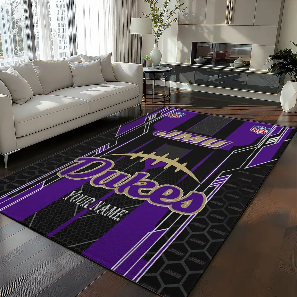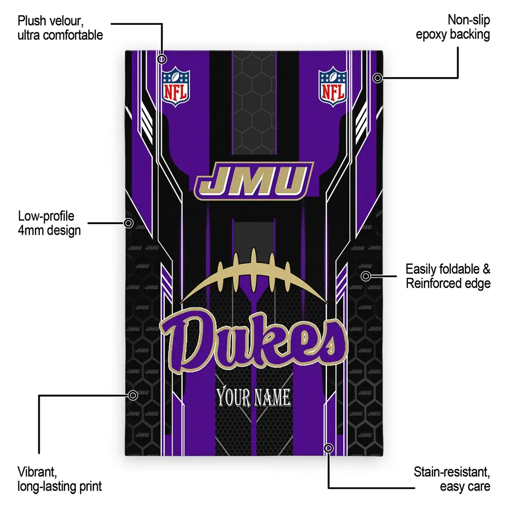 Hit a home run with your favorite team by displaying the James Madison Dukes Rug – Personalized Football Laces Purple from MLB Fan Zone. Featuring a bold team design and crafted with plush velour, this durable sports rug offers ultimate comfort for your home or game-day fan cave. With a quality non-slip grip and stay-flat design, it’s the perfect accessory for any die-hard fan ready to rep their team from the living room to the clubhouse.