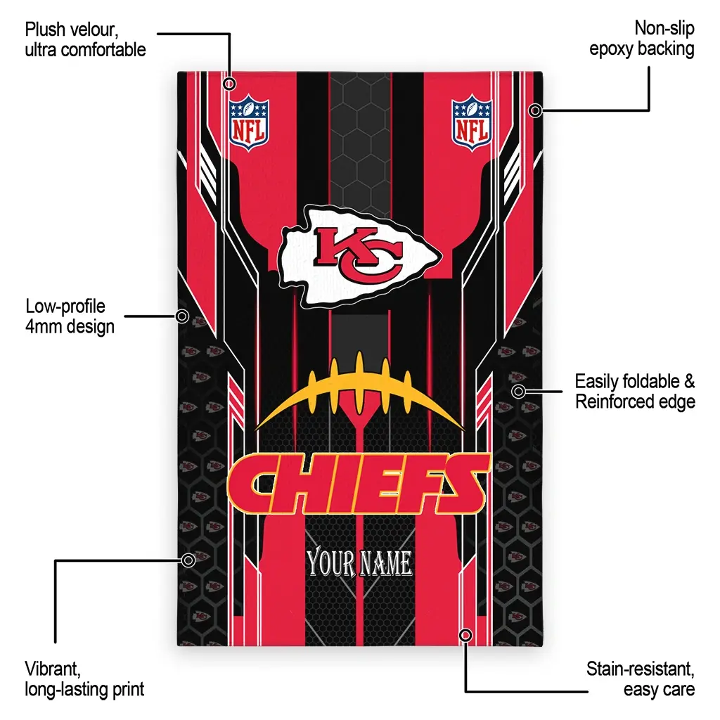 Hit a home run with your favorite team by displaying the Kansas City Chiefs Rug – Customized Football Laces Red from MLB Fan Zone. Featuring a bold team design and crafted with plush velour, this durable sports rug offers ultimate comfort for your home or game-day fan cave. With a quality non-slip grip and stay-flat design, it’s the perfect accessory for any die-hard fan ready to rep their team from the living room to the clubhouse.