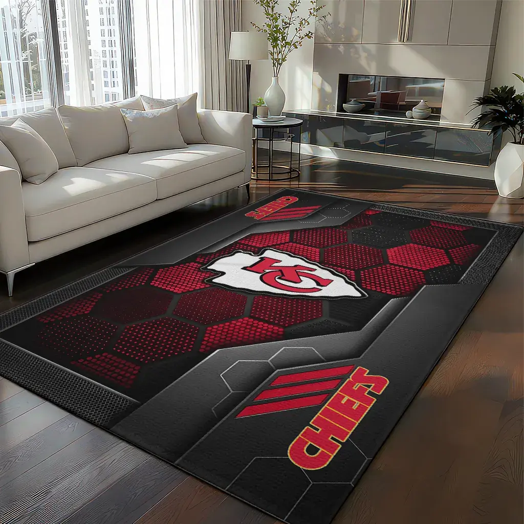 Kansas City Chiefs Rug – Hexagonal Grid Pattern Red