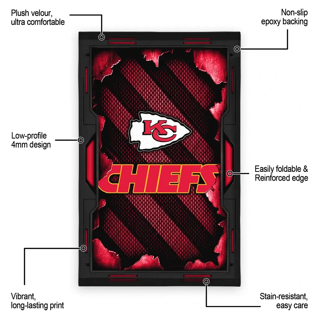 Hit a home run with your favorite team by displaying the Kansas City Chiefs Rug – Custom Torn Mesh Red from MLB Fan Zone. Featuring a bold team design and crafted with plush velour, this durable sports rug offers ultimate comfort for your home or game-day fan cave. With a quality non-slip grip and stay-flat design, it’s the perfect accessory for any die-hard fan ready to rep their team from the living room to the clubhouse.