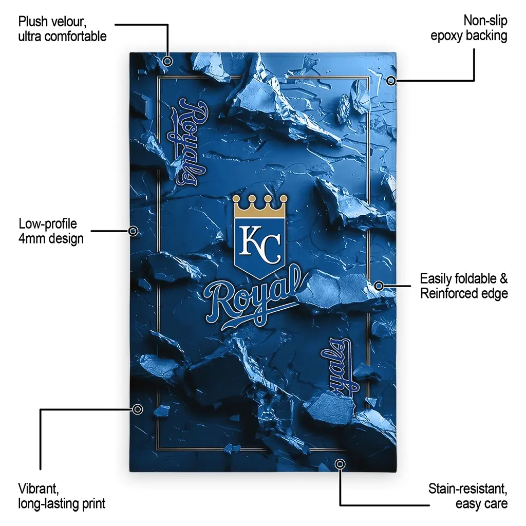 Hit a home run with your favorite team by displaying the Kansas City Royals Rug – Custom Cracked Surface Design Royal Blue from MLB Fan Zone. Featuring a bold team design and crafted with plush velour, this durable sports rug offers ultimate comfort for your home or game-day fan cave. With a quality non-slip grip and stay-flat design, it’s the perfect accessory for any die-hard fan ready to rep their team from the living room to the clubhouse.