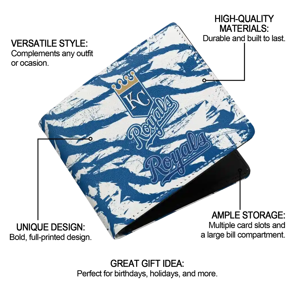 Hit a home run with Kansas City Royals by wearing the Kansas City Royals Abstract Stripes Royal Blue Wallet. Featuring a bold team design and crafted with premium materials, this durable sports wallet offers plenty of space for your cards, cash, and game-day essentials. With a secure fold-over closure, it’s the perfect accessory for any die-hard fan ready to rep their team, from the dugout to the streets.