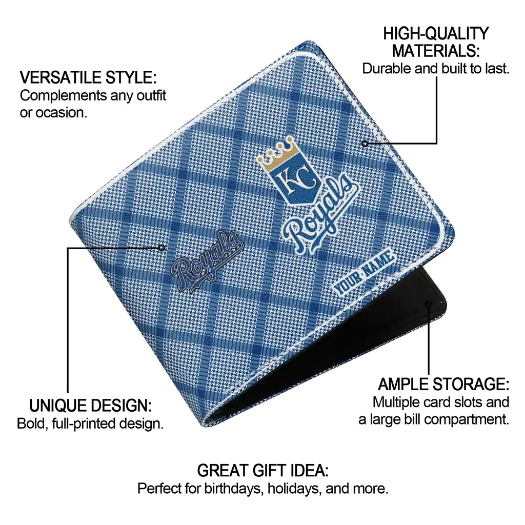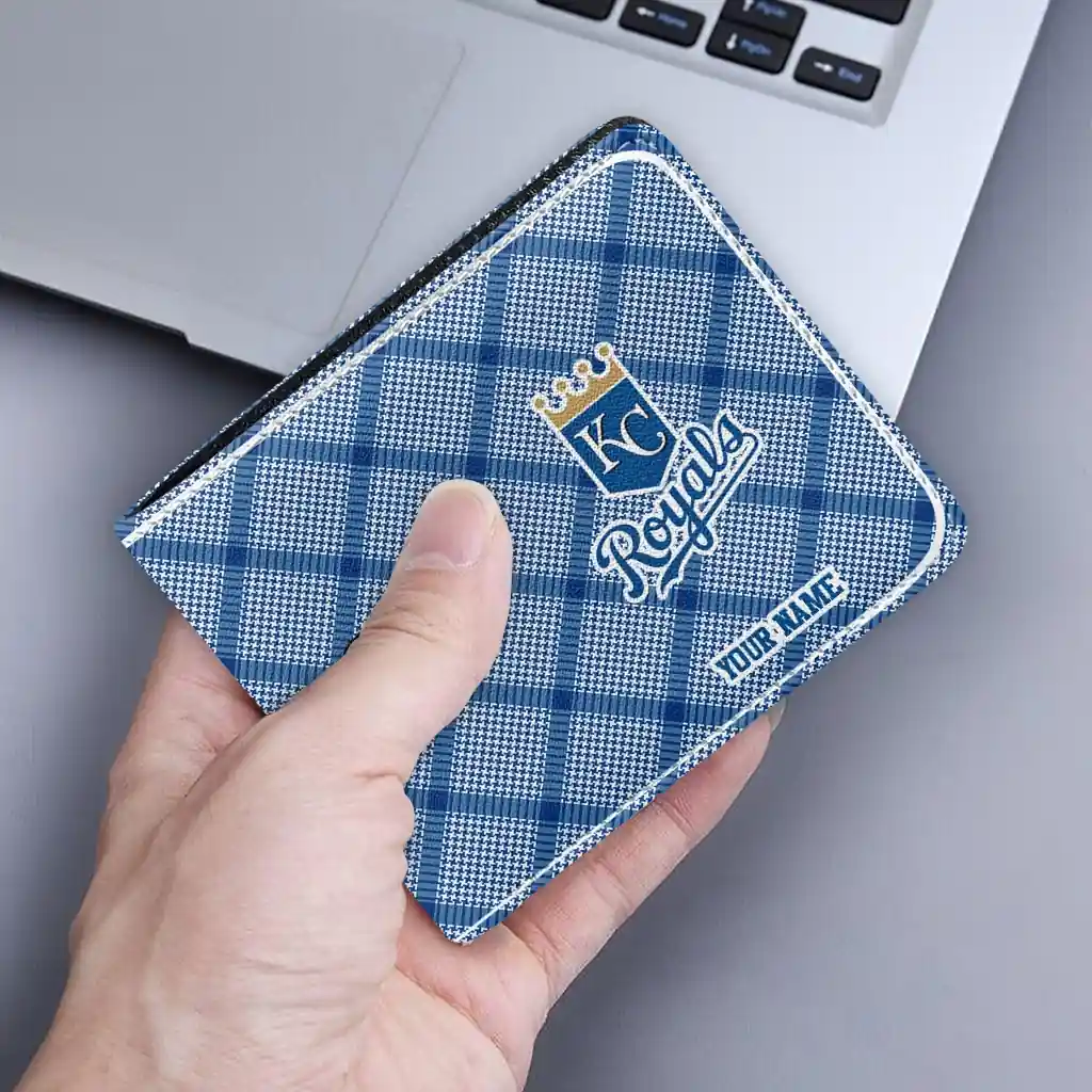 Hit a home run with Kansas City Royals by wearing the Custom Kansas City Royals Plaid Grid Royal Blue Wallet. Featuring a bold team design and crafted with premium materials, this durable sports wallet offers plenty of space for your cards, cash, and game-day essentials. With a secure fold-over closure, it’s the perfect accessory for any die-hard fan ready to rep their team, from the dugout to the streets.