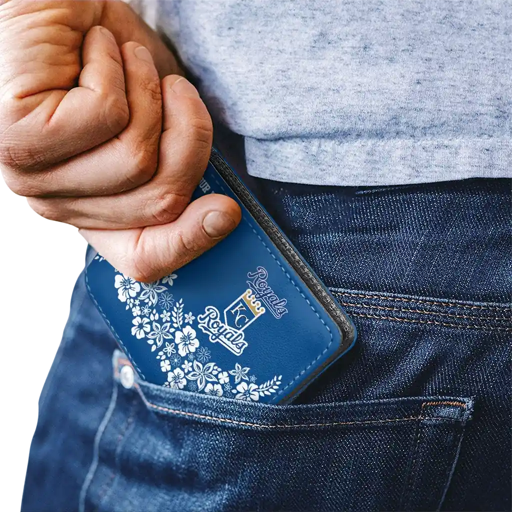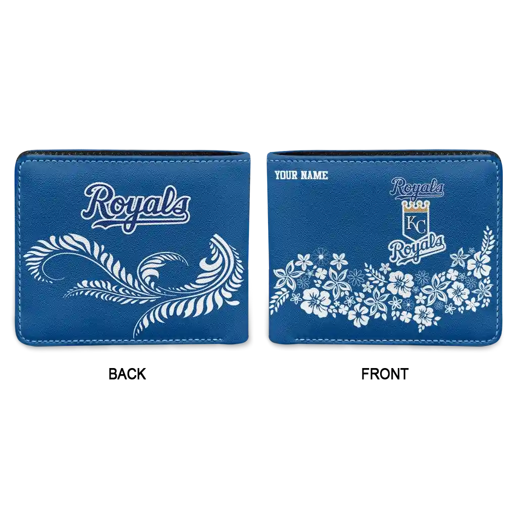 Hit a home run with Kansas City Royals by wearing the Customized Kansas City Royals Floral Cluster Royal Blue White Wallet. Featuring a bold team design and crafted with premium materials, this durable sports wallet offers plenty of space for your cards, cash, and game-day essentials. With a secure fold-over closure, it’s the perfect accessory for any die-hard fan ready to rep their team, from the dugout to the streets.