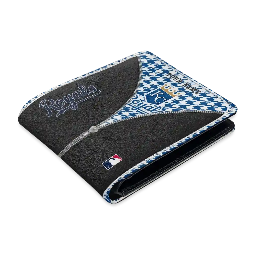 Hit a home run with Kansas City Royals by wearing the Personalized Kansas City Royals Zipper Split Royal Blue Black Wallet. Featuring a bold team design and crafted with premium materials, this durable sports wallet offers plenty of space for your cards, cash, and game-day essentials. With a secure fold-over closure, it’s the perfect accessory for any die-hard fan ready to rep their team, from the dugout to the streets.