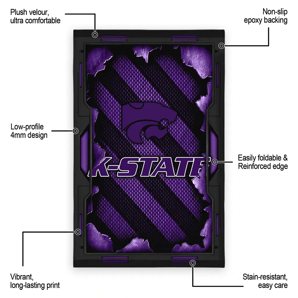 Hit a home run with your favorite team by displaying the Kansas State Wildcats Rug – Customized Torn Mesh Purple from MLB Fan Zone. Featuring a bold team design and crafted with plush velour, this durable sports rug offers ultimate comfort for your home or game-day fan cave. With a quality non-slip grip and stay-flat design, it’s the perfect accessory for any die-hard fan ready to rep their team from the living room to the clubhouse.