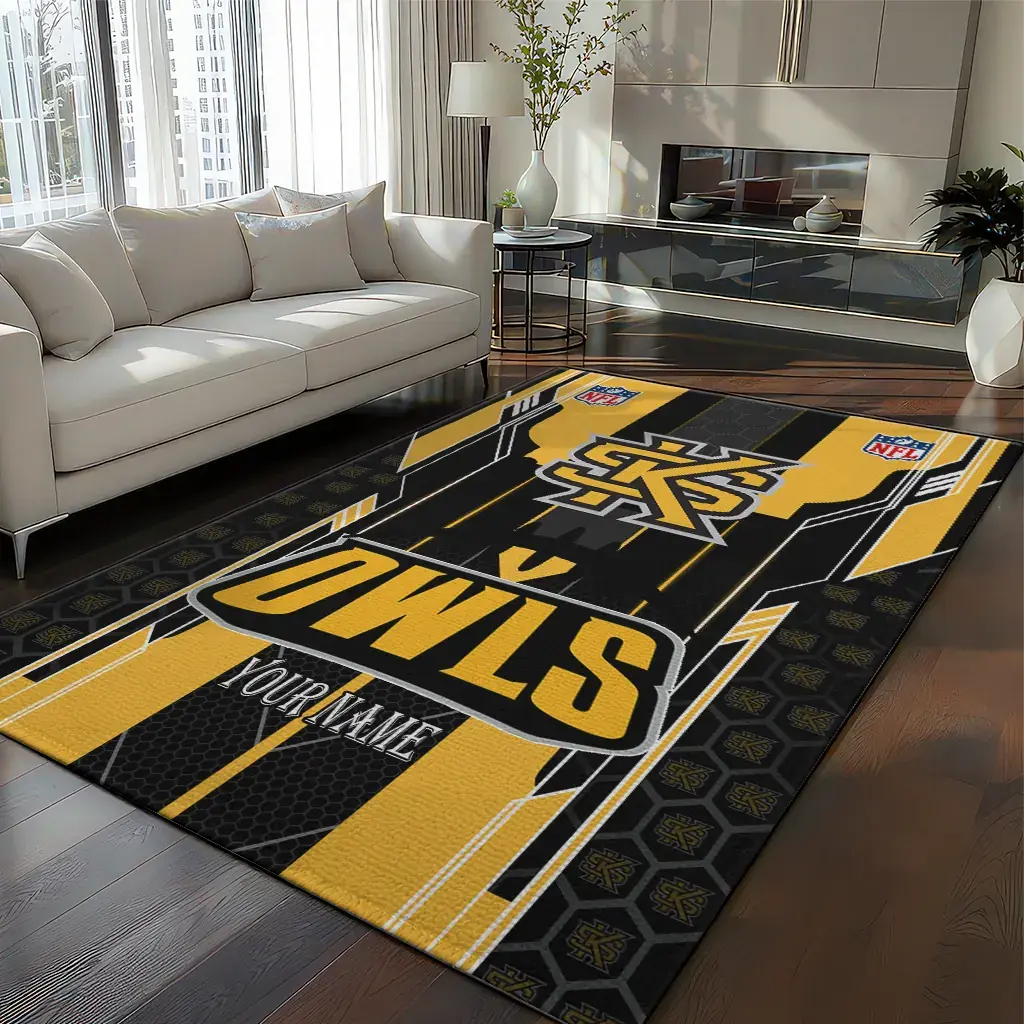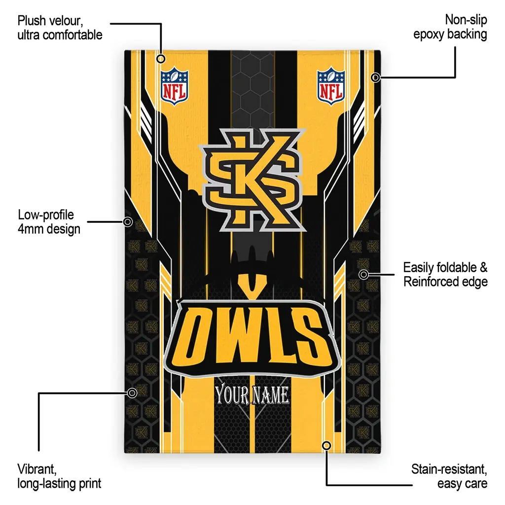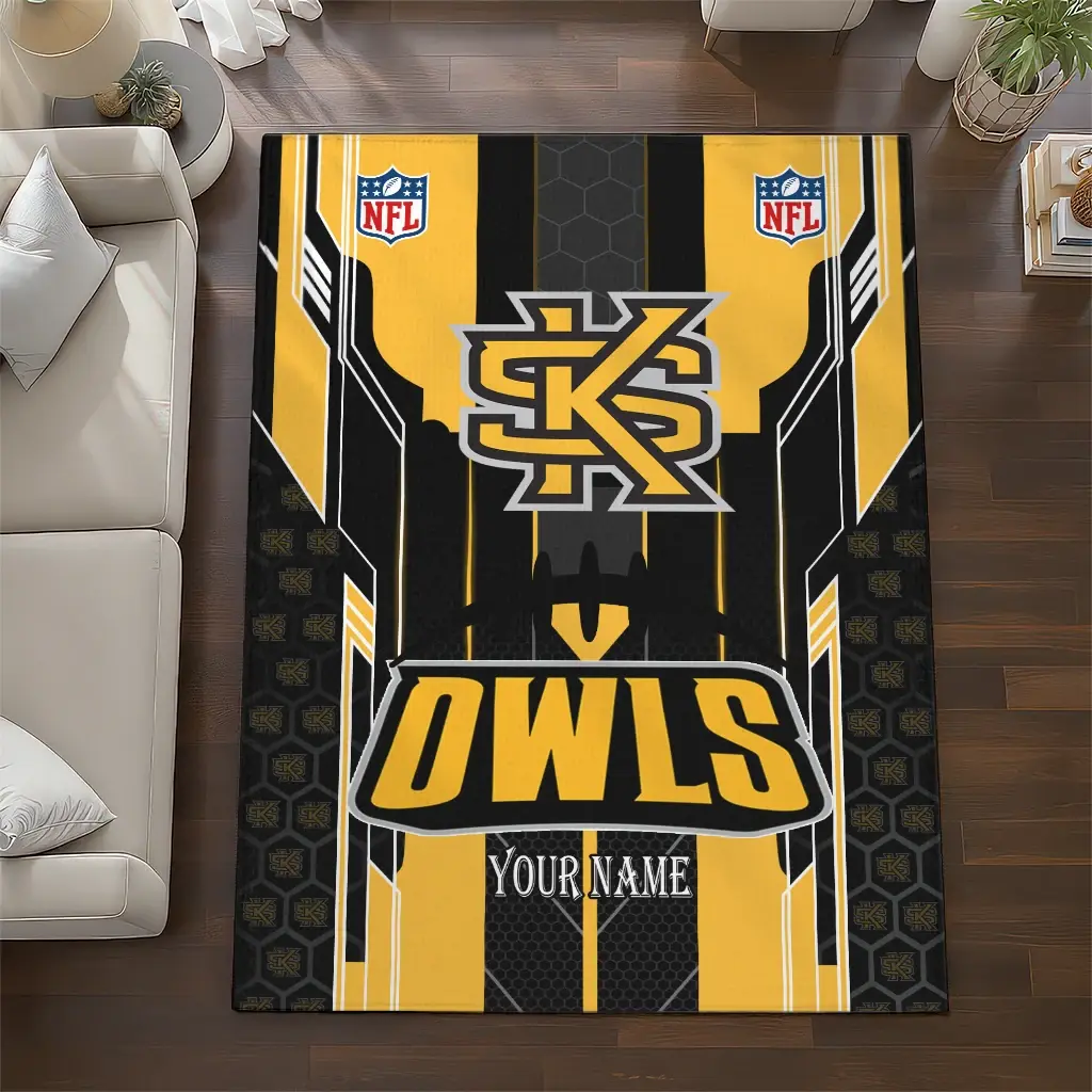 Hit a home run with your favorite team by displaying the Kennesaw State Owls Rug – Personalized Football Laces Gold from MLB Fan Zone. Featuring a bold team design and crafted with plush velour, this durable sports rug offers ultimate comfort for your home or game-day fan cave. With a quality non-slip grip and stay-flat design, it’s the perfect accessory for any die-hard fan ready to rep their team from the living room to the clubhouse.