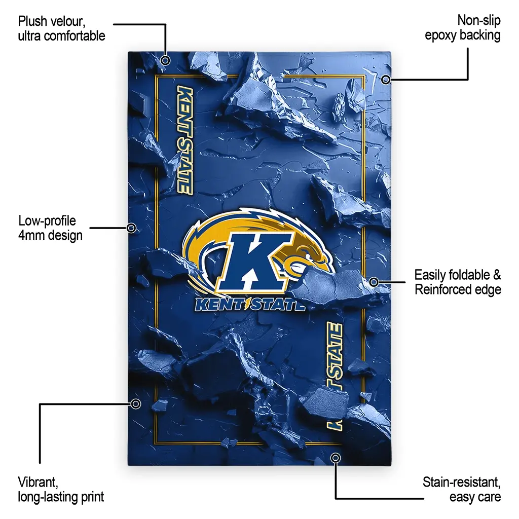 Hit a home run with your favorite team by displaying the Kent State Golden Flashes Rug – Personalized Cracked Surface Design Navy Blue from MLB Fan Zone. Featuring a bold team design and crafted with plush velour, this durable sports rug offers ultimate comfort for your home or game-day fan cave. With a quality non-slip grip and stay-flat design, it’s the perfect accessory for any die-hard fan ready to rep their team from the living room to the clubhouse.