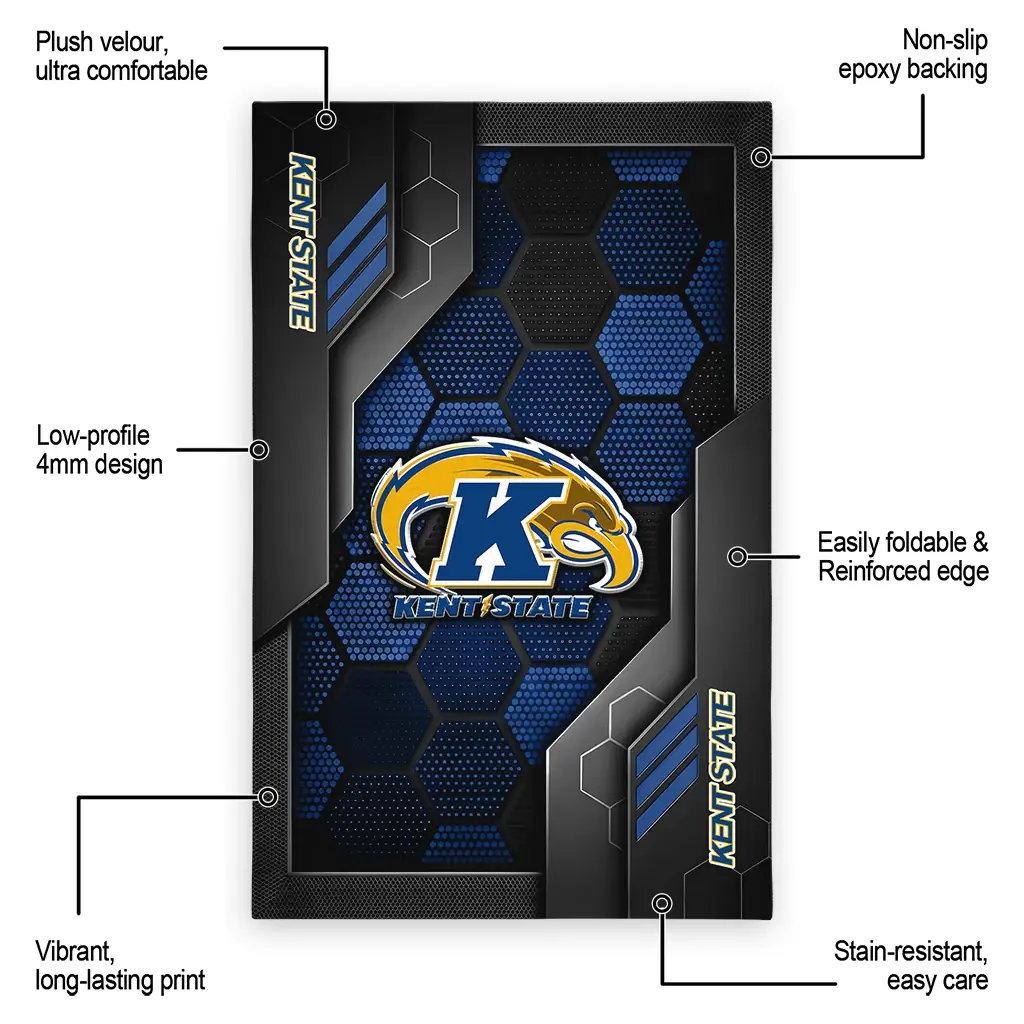 Hit a home run with your favorite team by displaying the Kent State Golden Flashes Rug – Customized Hexagonal Grid Pattern Navy Blue from MLB Fan Zone. Featuring a bold team design and crafted with plush velour, this durable sports rug offers ultimate comfort for your home or game-day fan cave. With a quality non-slip grip and stay-flat design, it’s the perfect accessory for any die-hard fan ready to rep their team from the living room to the clubhouse.