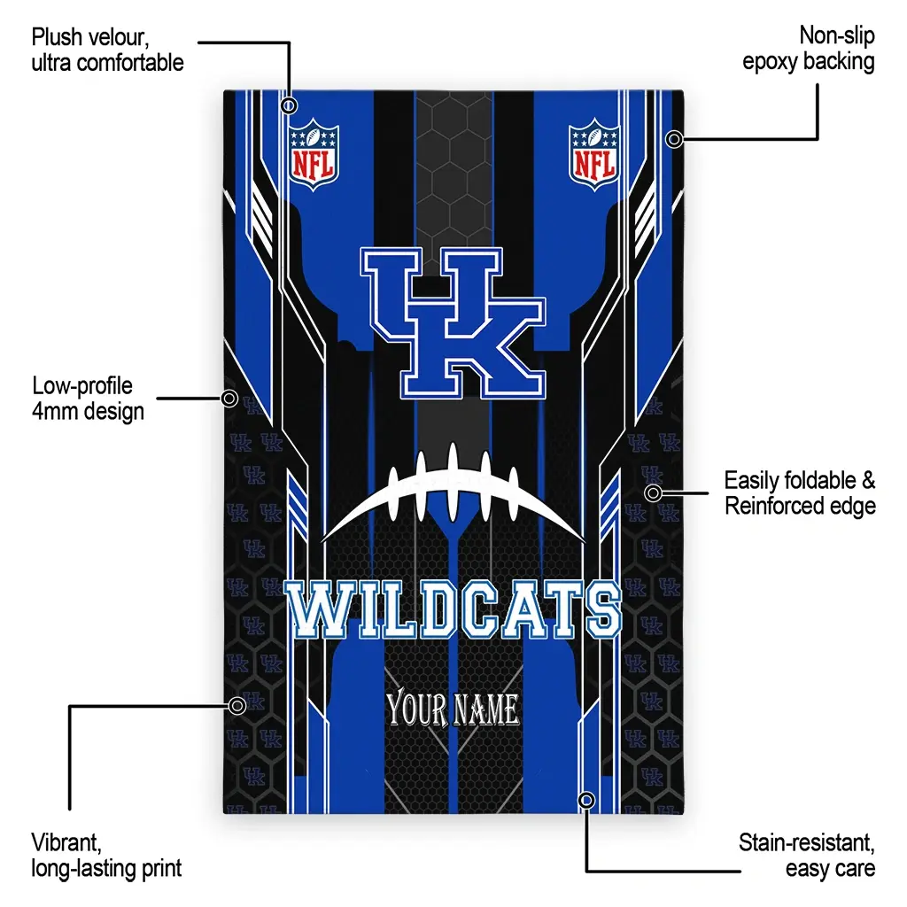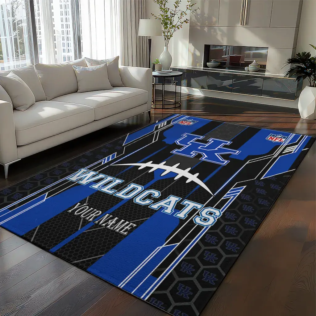 Hit a home run with your favorite team by displaying the Kentucky Wildcats Rug – Customized Football Laces Blue from MLB Fan Zone. Featuring a bold team design and crafted with plush velour, this durable sports rug offers ultimate comfort for your home or game-day fan cave. With a quality non-slip grip and stay-flat design, it’s the perfect accessory for any die-hard fan ready to rep their team from the living room to the clubhouse.