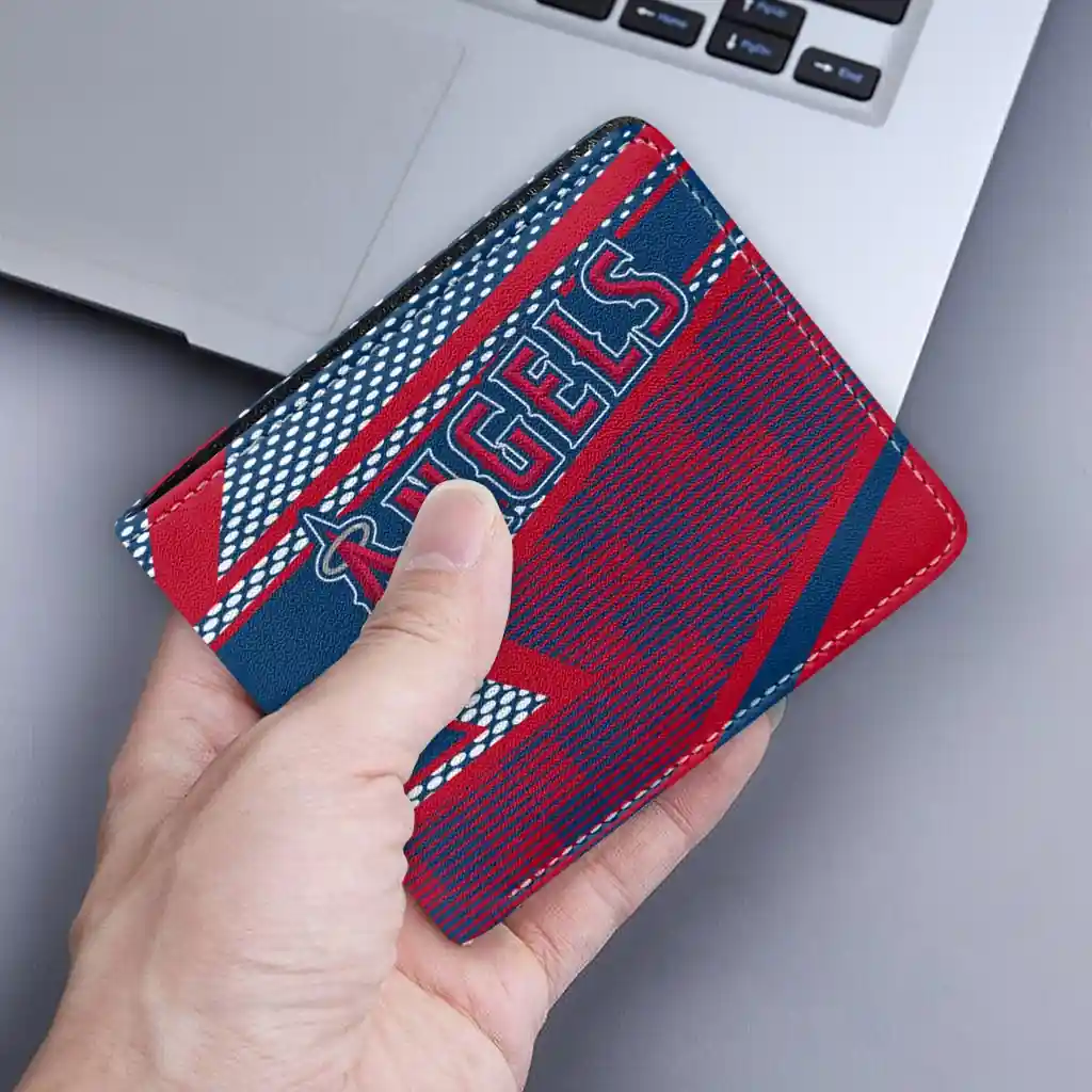 Hit a home run with Los Angeles Angels by wearing the Los Angeles Angels Arrow Mesh Blue Wallet. Featuring a bold team design and crafted with premium materials, this durable sports wallet offers plenty of space for your cards, cash, and game-day essentials. With a secure fold-over closure, it’s the perfect accessory for any die-hard fan ready to rep their team, from the dugout to the streets.