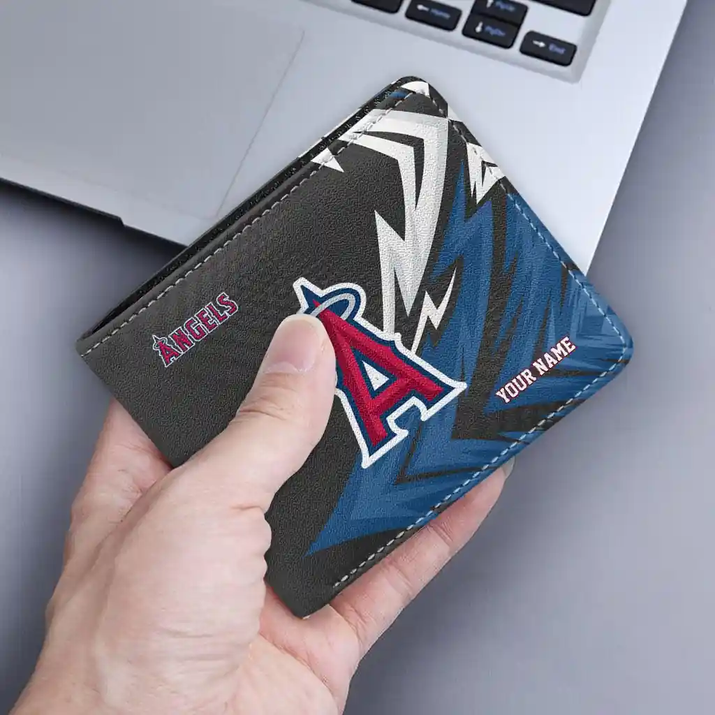 Hit a home run with Los Angeles Angels by wearing the Customized Los Angeles Angels Sharp Arrow Streaks Blue Black Wallet. Featuring a bold team design and crafted with premium materials, this durable sports wallet offers plenty of space for your cards, cash, and game-day essentials. With a secure fold-over closure, it’s the perfect accessory for any die-hard fan ready to rep their team, from the dugout to the streets.