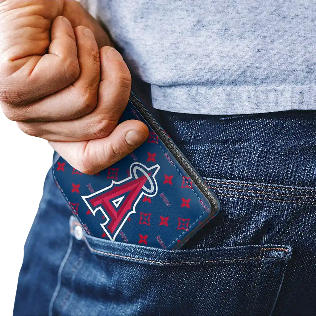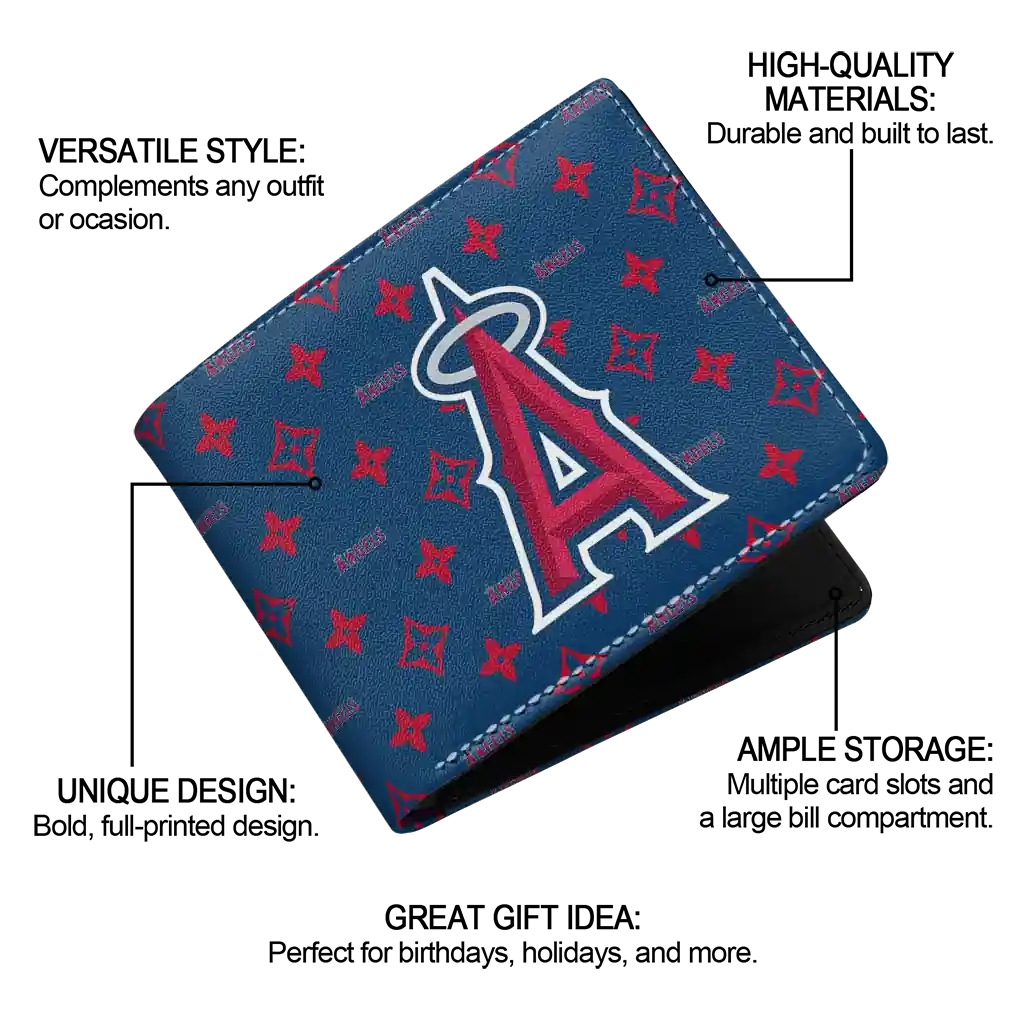Hit a home run with Los Angeles Angels by wearing the Los Angeles Angels Iconic Monogram Bloom Blue Wallet. Featuring a bold team design and crafted with premium materials, this durable sports wallet offers plenty of space for your cards, cash, and game-day essentials. With a secure fold-over closure, it’s the perfect accessory for any die-hard fan ready to rep their team, from the dugout to the streets.