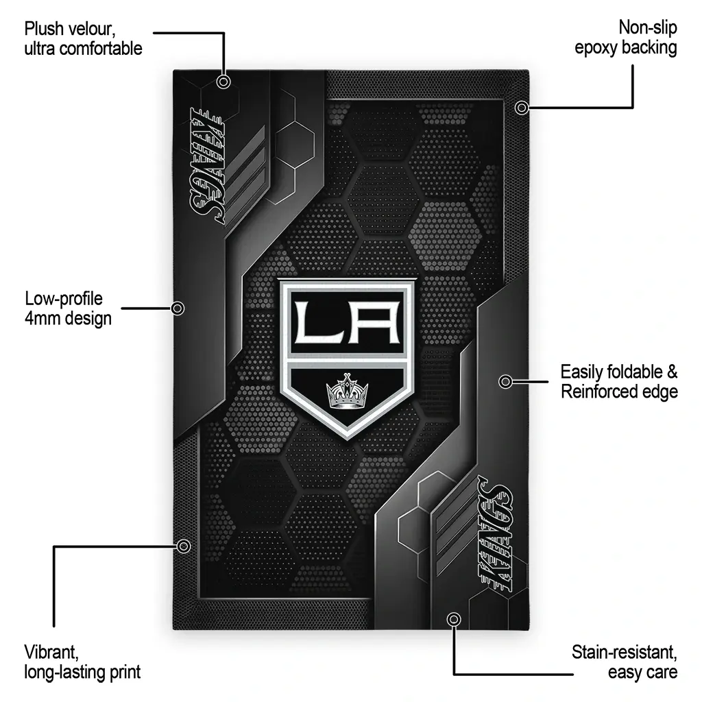 Hit a home run with your favorite team by displaying the Los Angeles Kings Rug – Customized Hexagonal Grid Pattern Black from MLB Fan Zone. Featuring a bold team design and crafted with plush velour, this durable sports rug offers ultimate comfort for your home or game-day fan cave. With a quality non-slip grip and stay-flat design, it’s the perfect accessory for any die-hard fan ready to rep their team from the living room to the clubhouse.
