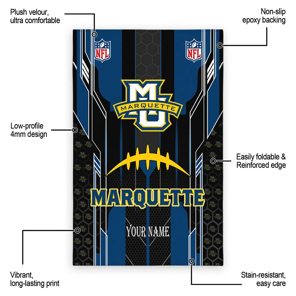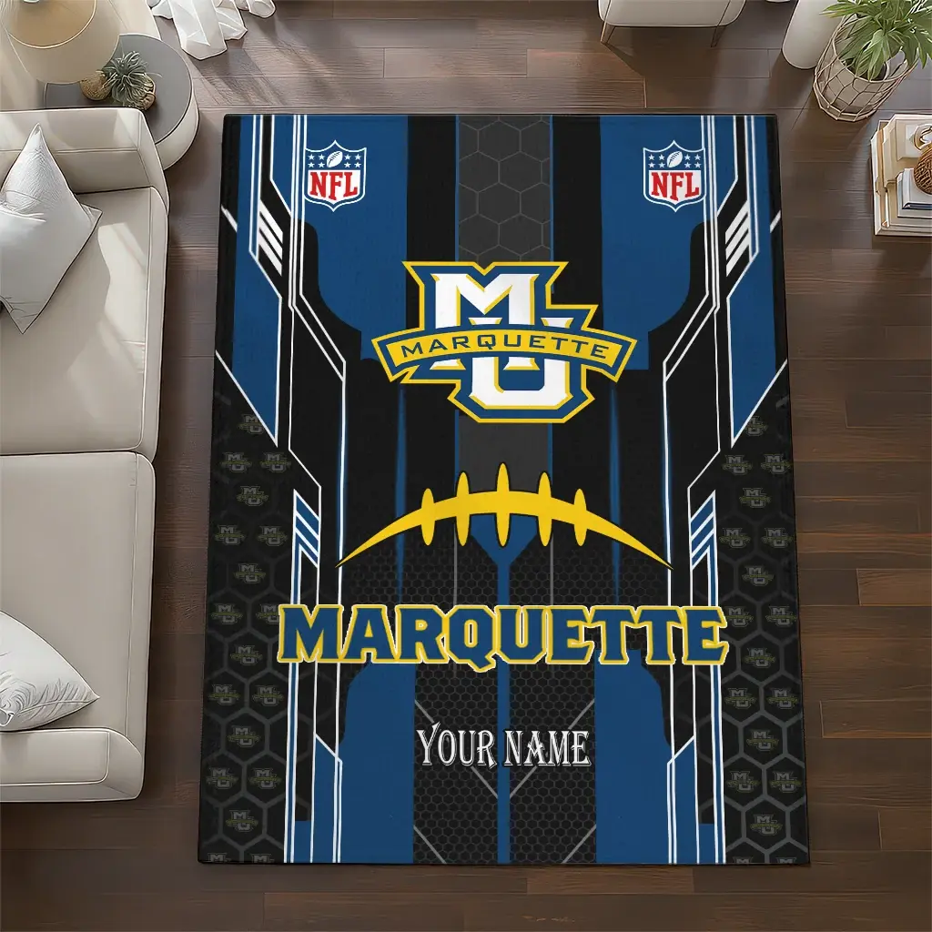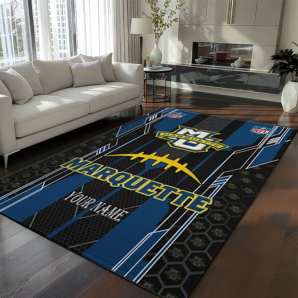 Hit a home run with your favorite team by displaying the Marquette Golden Eagles Rug – Custom Football Laces Blue from MLB Fan Zone. Featuring a bold team design and crafted with plush velour, this durable sports rug offers ultimate comfort for your home or game-day fan cave. With a quality non-slip grip and stay-flat design, it’s the perfect accessory for any die-hard fan ready to rep their team from the living room to the clubhouse.