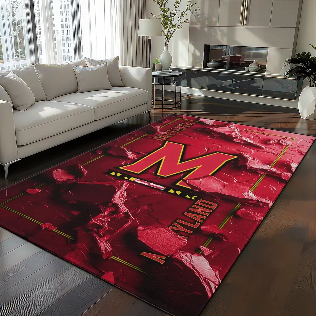 Maryland Terrapins Rug – Cracked Surface Design Red