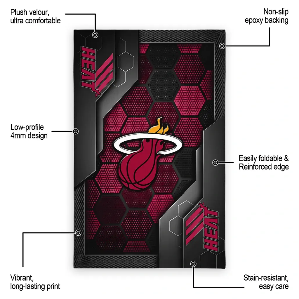 Hit a home run with your favorite team by displaying the Miami Heat Rug – Custom Hexagonal Grid Pattern Red from MLB Fan Zone. Featuring a bold team design and crafted with plush velour, this durable sports rug offers ultimate comfort for your home or game-day fan cave. With a quality non-slip grip and stay-flat design, it’s the perfect accessory for any die-hard fan ready to rep their team from the living room to the clubhouse.