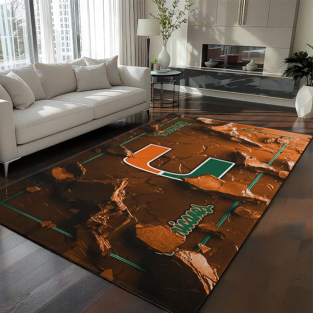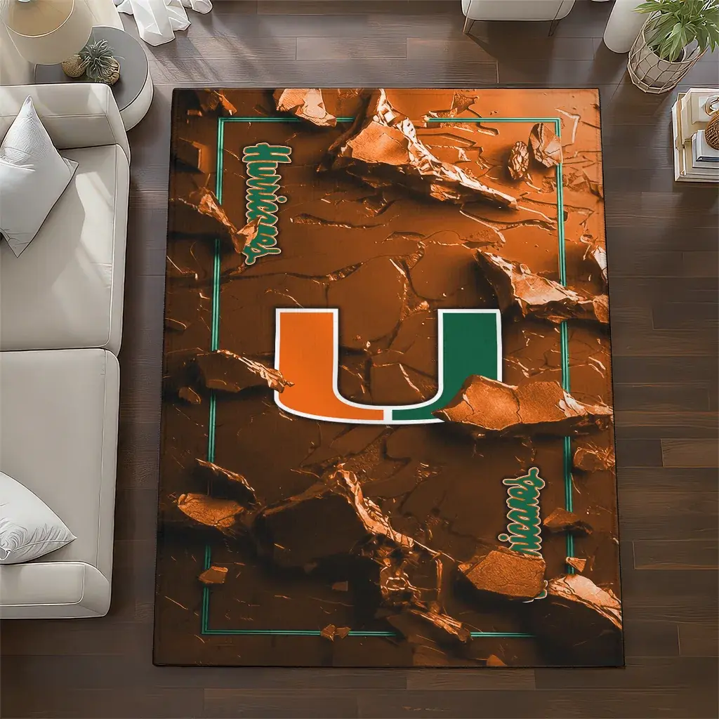 Miami Hurricanes Rug – Cracked Surface Design Orange
