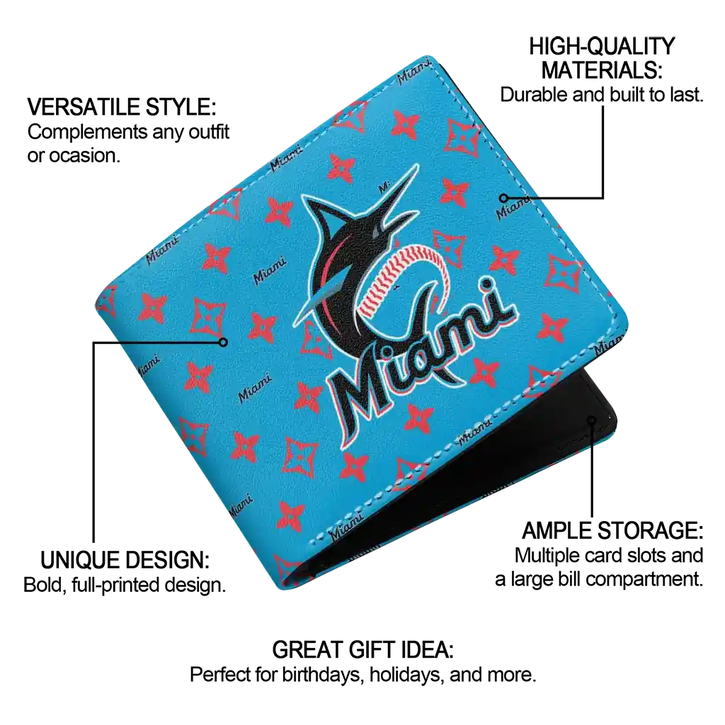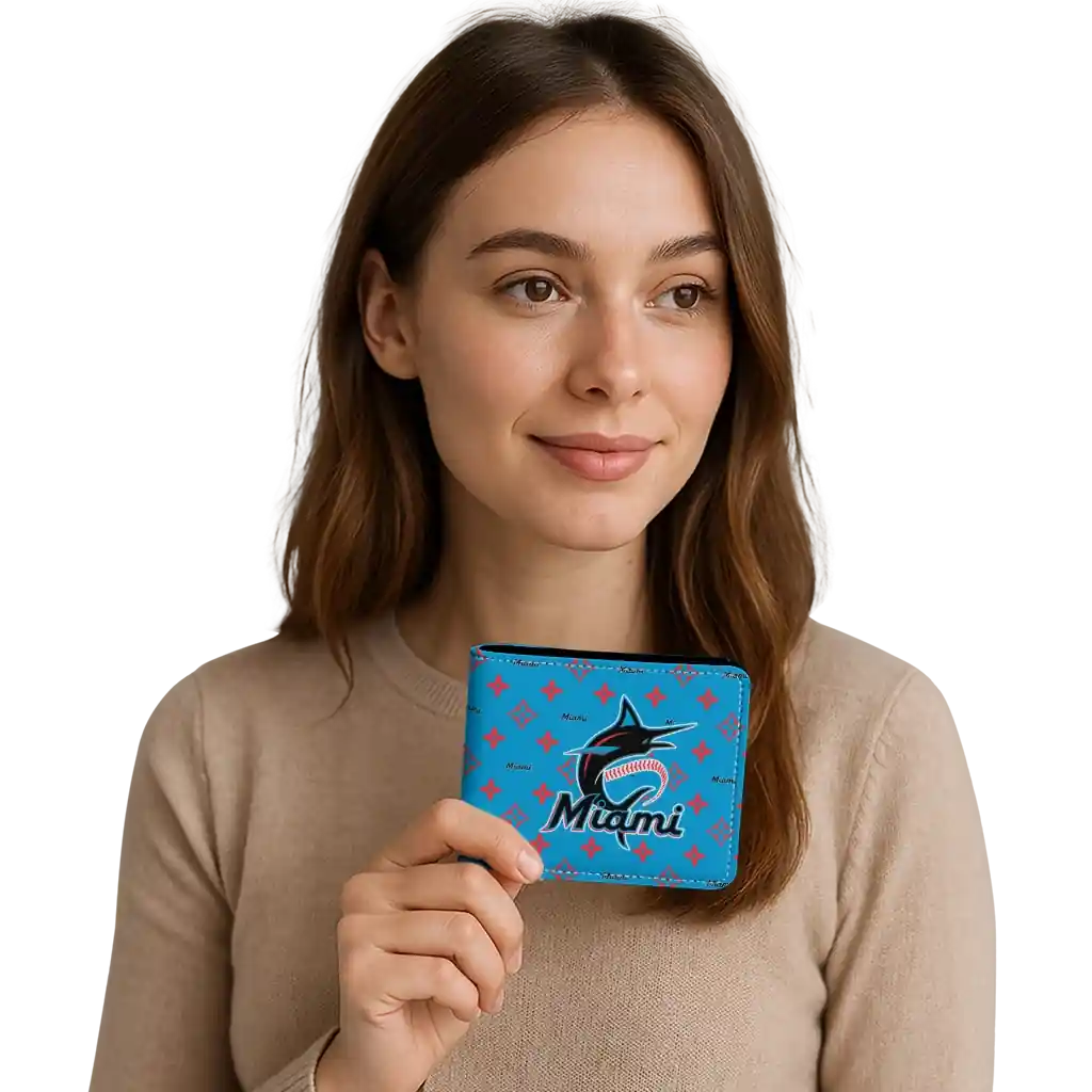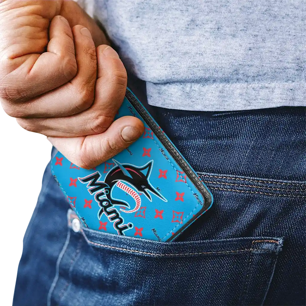 Hit a home run with Miami Marlins by wearing the Miami Marlins Iconic Monogram Bloom Blue Wallet. Featuring a bold team design and crafted with premium materials, this durable sports wallet offers plenty of space for your cards, cash, and game-day essentials. With a secure fold-over closure, it’s the perfect accessory for any die-hard fan ready to rep their team, from the dugout to the streets.