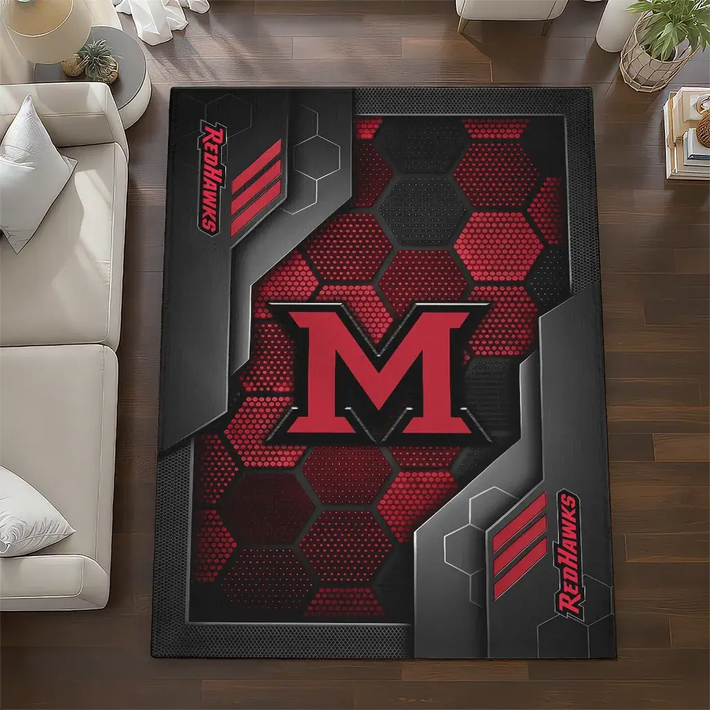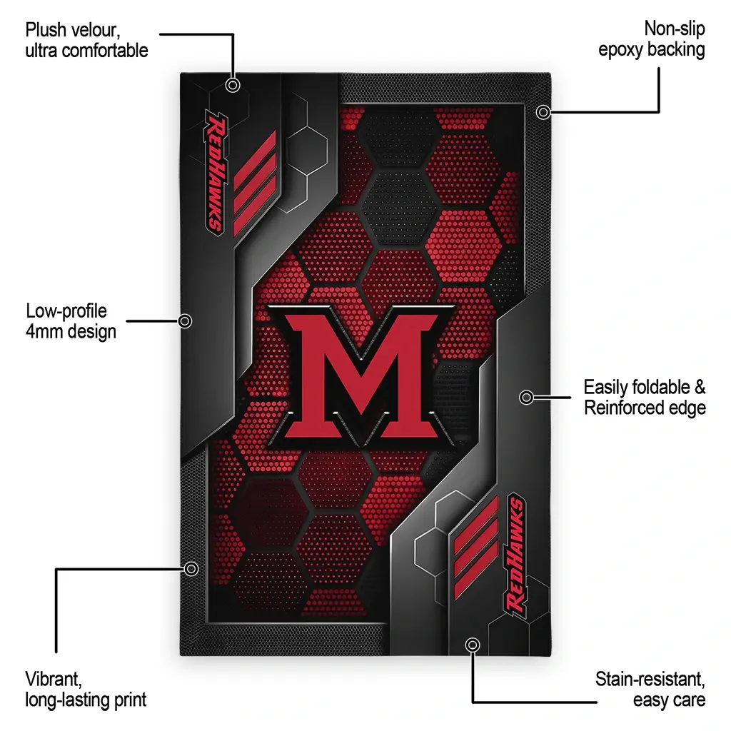 Miami RedHawks Rug – Hexagonal Grid Pattern Red