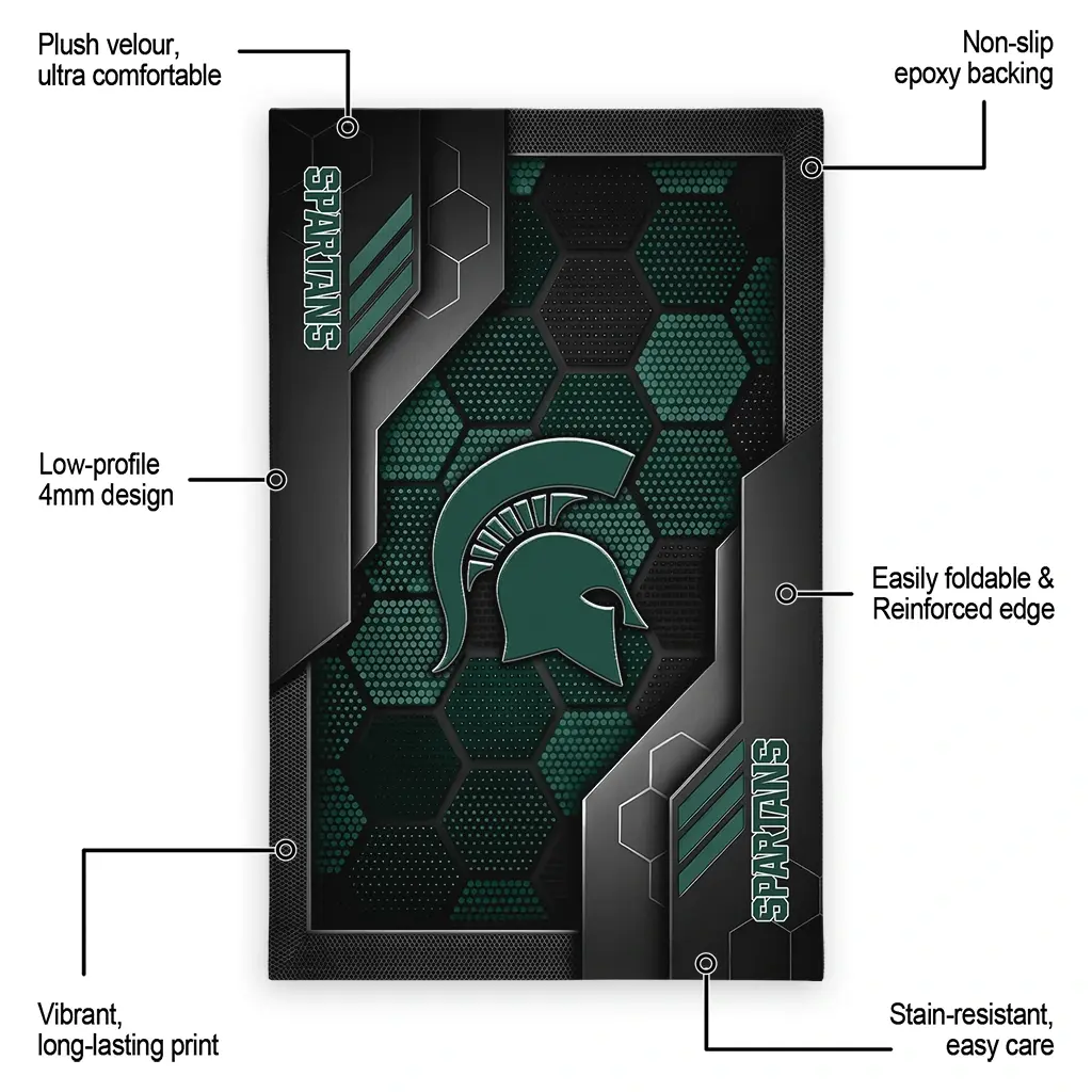 Michigan State Spartans Rug – Hexagonal Grid Pattern Green