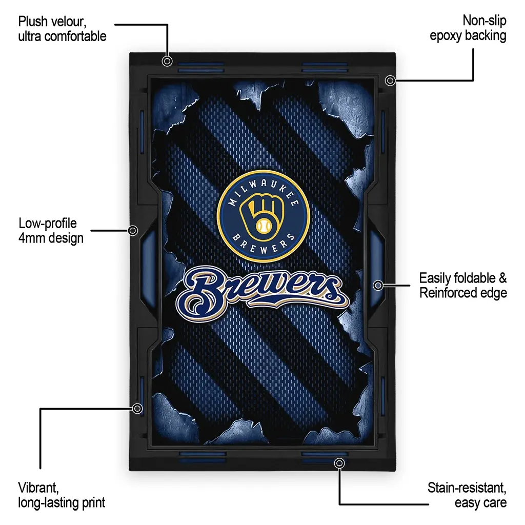 Hit a home run with your favorite team by displaying the Milwaukee Brewers Rug – Personalized Torn Mesh Navy Blue from MLB Fan Zone. Featuring a bold team design and crafted with plush velour, this durable sports rug offers ultimate comfort for your home or game-day fan cave. With a quality non-slip grip and stay-flat design, it’s the perfect accessory for any die-hard fan ready to rep their team from the living room to the clubhouse.