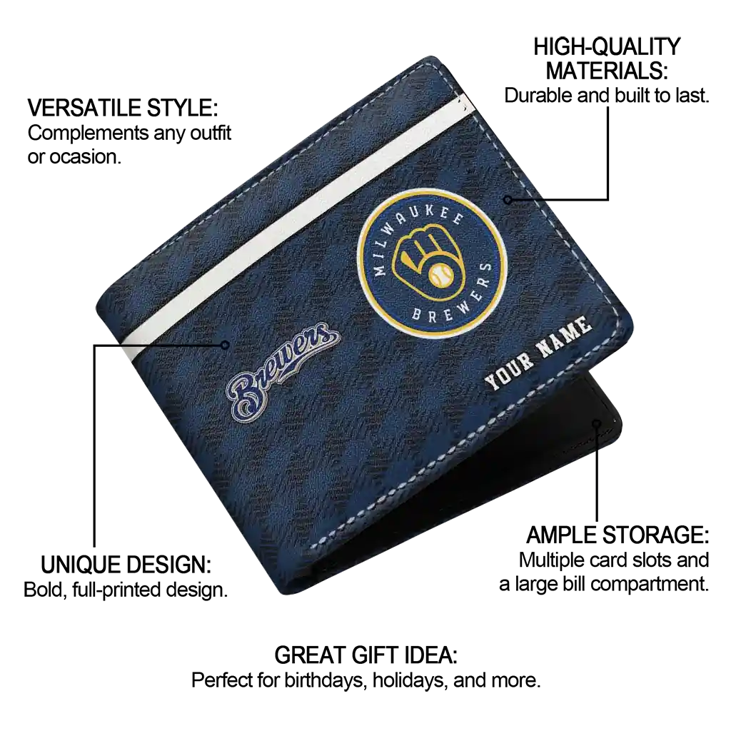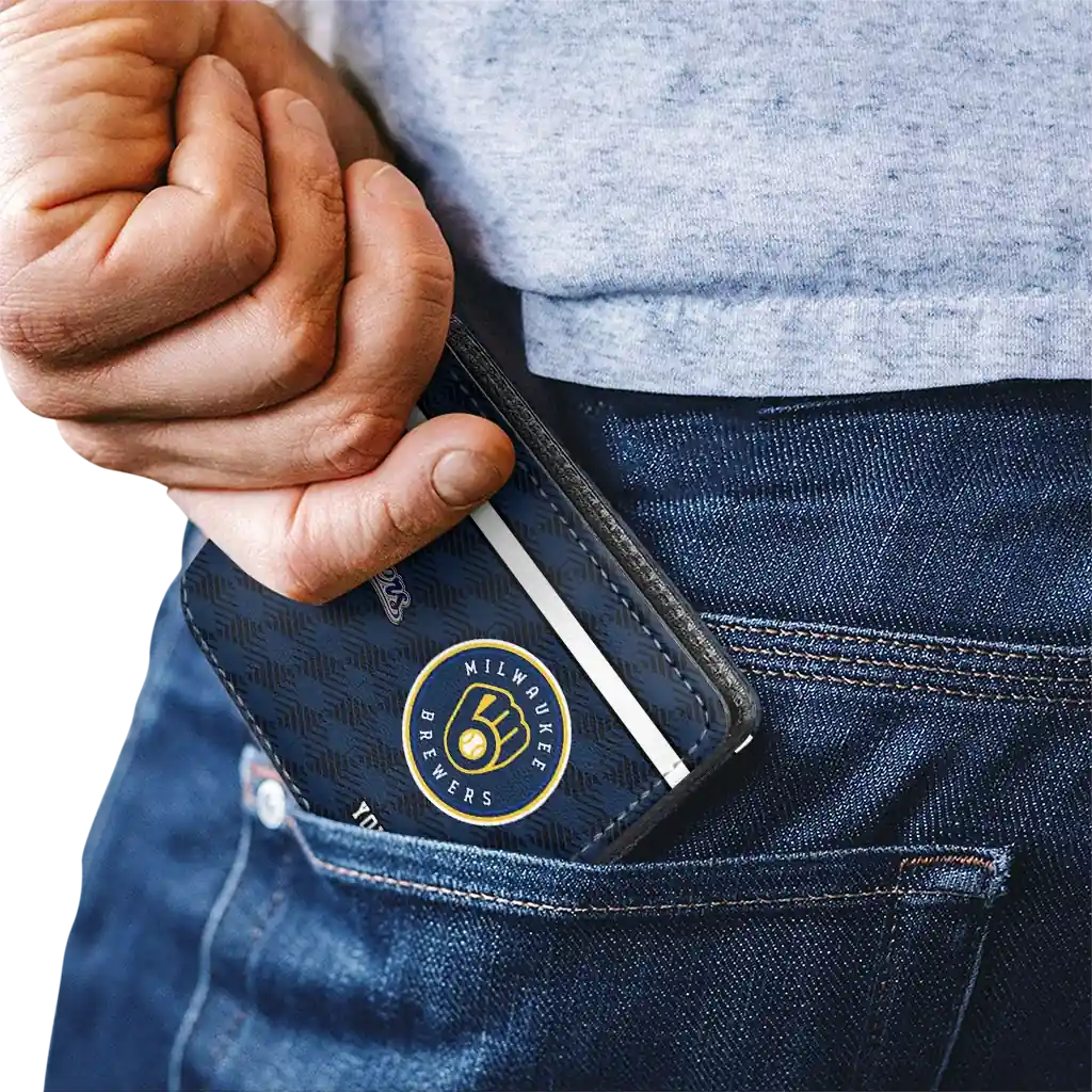 Hit a home run with Milwaukee Brewers by wearing the Customized Milwaukee Brewers Cube Illusion Navy Blue Wallet. Featuring a bold team design and crafted with premium materials, this durable sports wallet offers plenty of space for your cards, cash, and game-day essentials. With a secure fold-over closure, it’s the perfect accessory for any die-hard fan ready to rep their team, from the dugout to the streets.