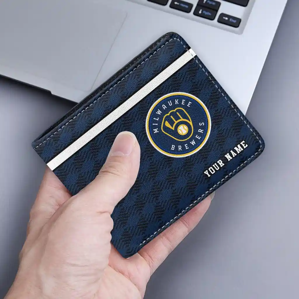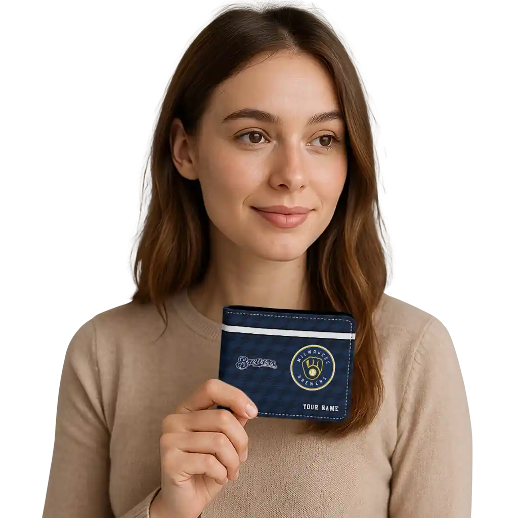 Milwaukee Brewers Wallet – Customized Cube Illusion Navy Blue