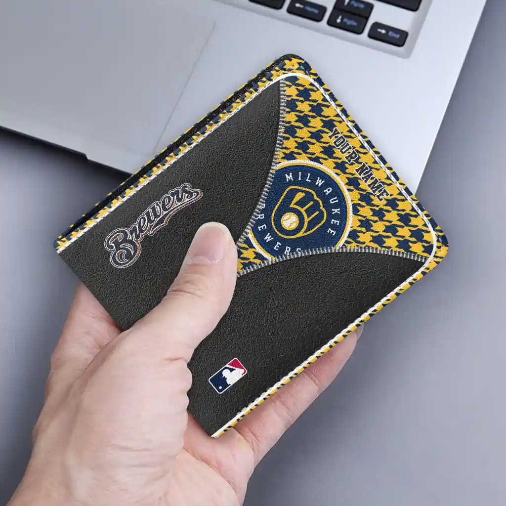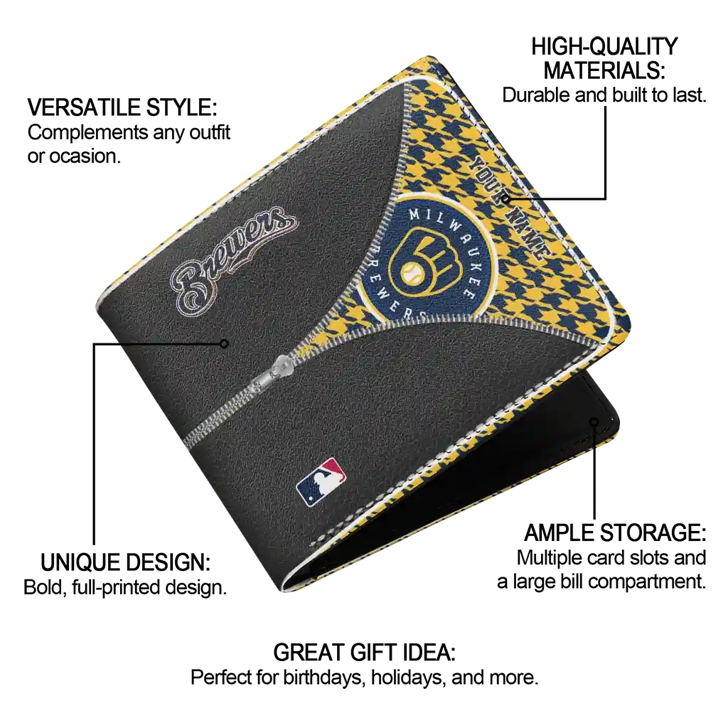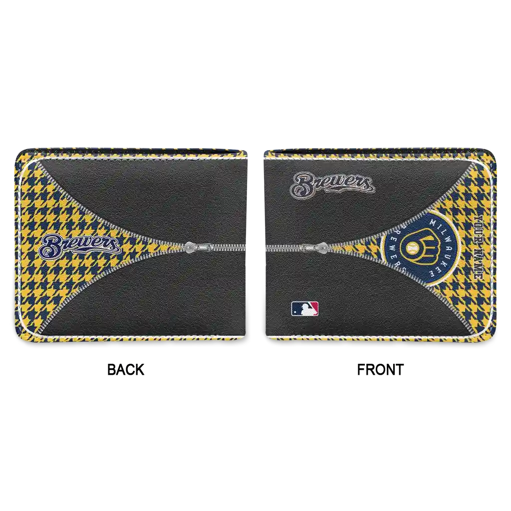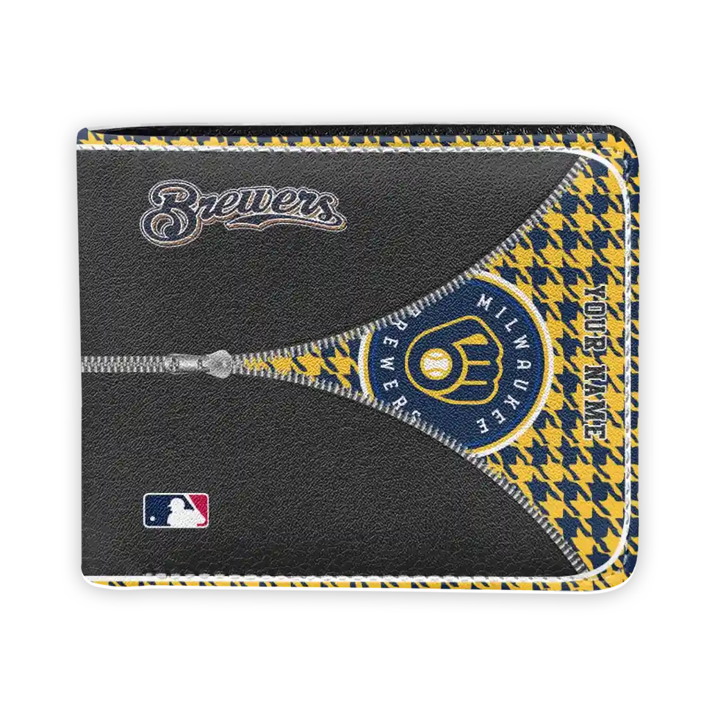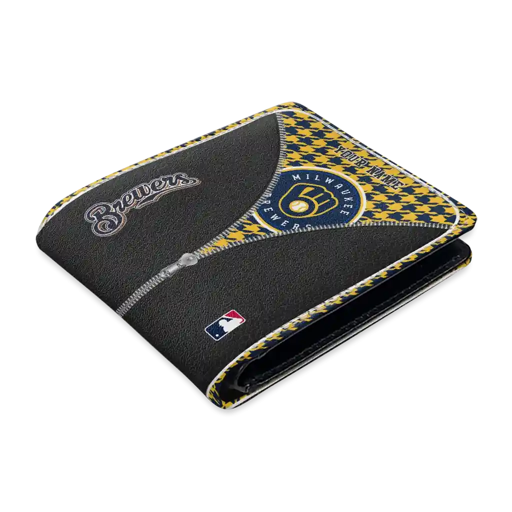Milwaukee Brewers Wallet – Customized Zipper Split Navy Yellow Black