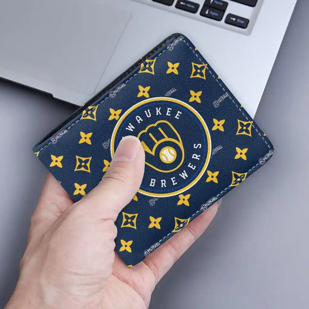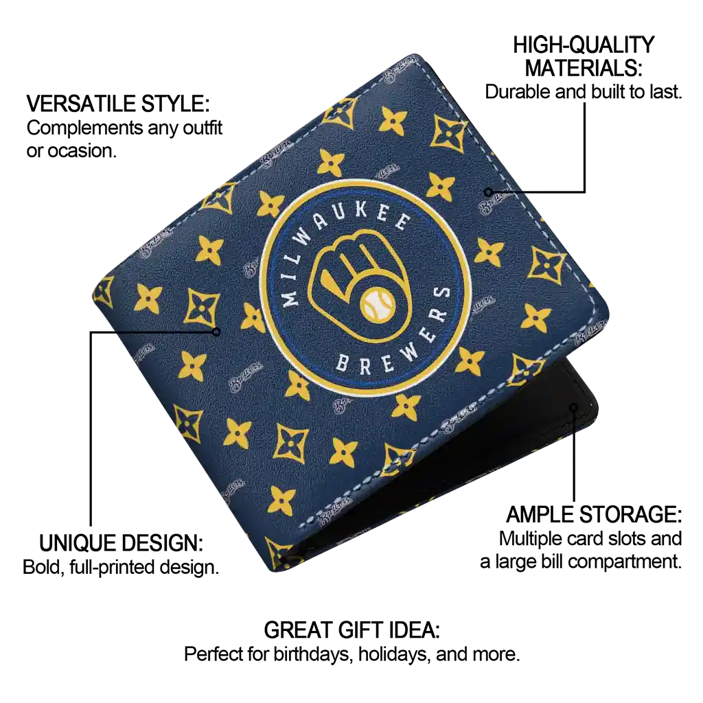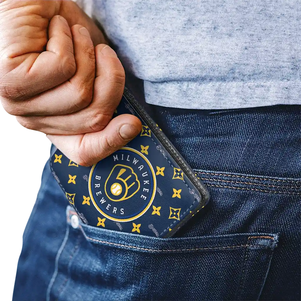 Hit a home run with Milwaukee Brewers by wearing the Milwaukee Brewers Iconic Monogram Bloom Navy Blue Wallet. Featuring a bold team design and crafted with premium materials, this durable sports wallet offers plenty of space for your cards, cash, and game-day essentials. With a secure fold-over closure, it’s the perfect accessory for any die-hard fan ready to rep their team, from the dugout to the streets.