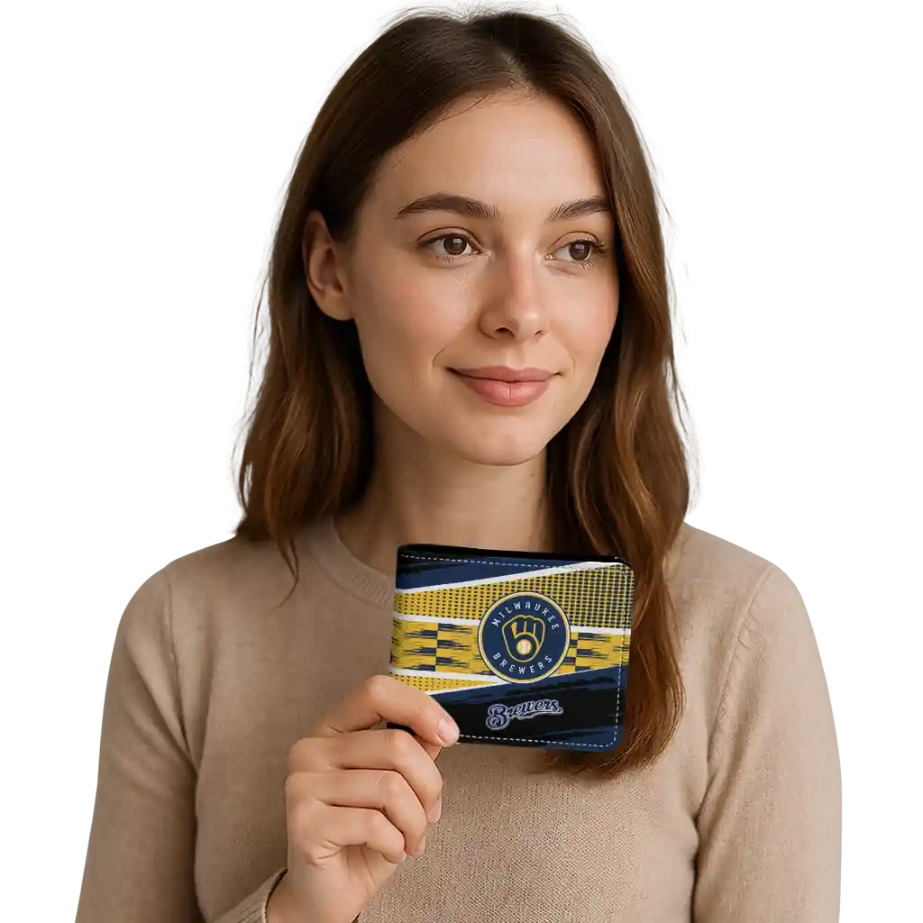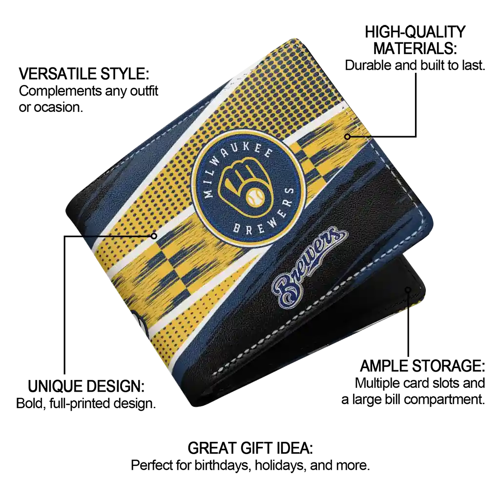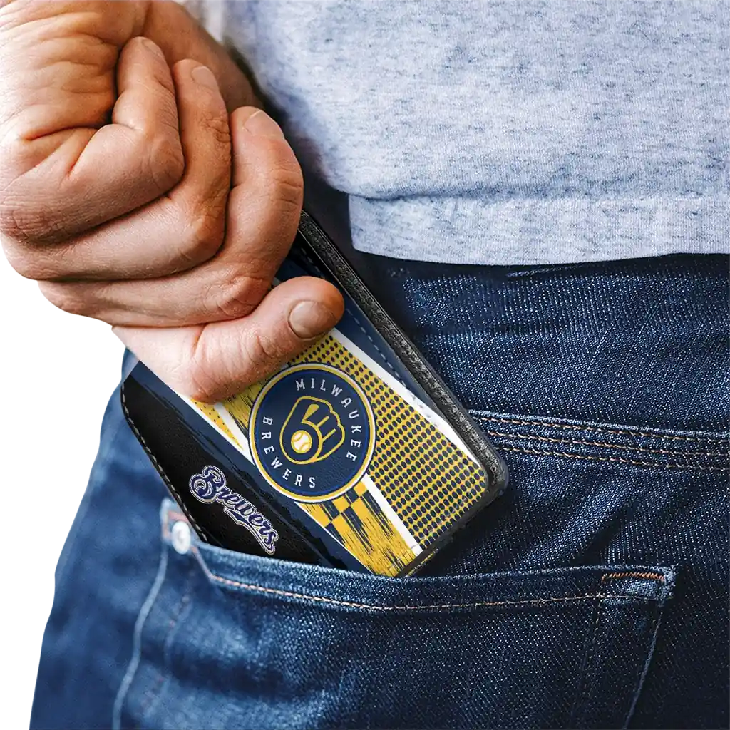 Hit a home run with Milwaukee Brewers by wearing the Personalized Milwaukee Brewers Checkerboard Brush Navy Blue Black Wallet. Featuring a bold team design and crafted with premium materials, this durable sports wallet offers plenty of space for your cards, cash, and game-day essentials. With a secure fold-over closure, it’s the perfect accessory for any die-hard fan ready to rep their team, from the dugout to the streets.