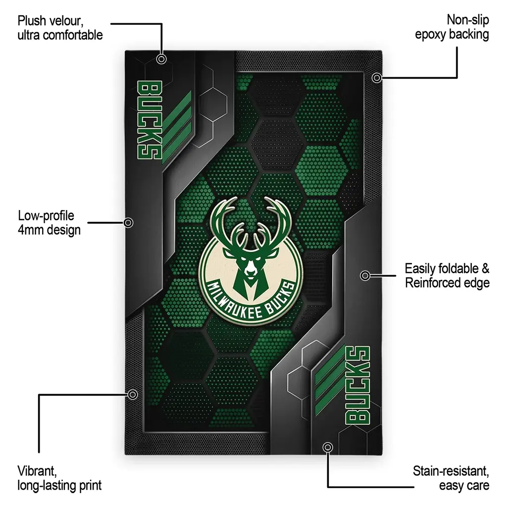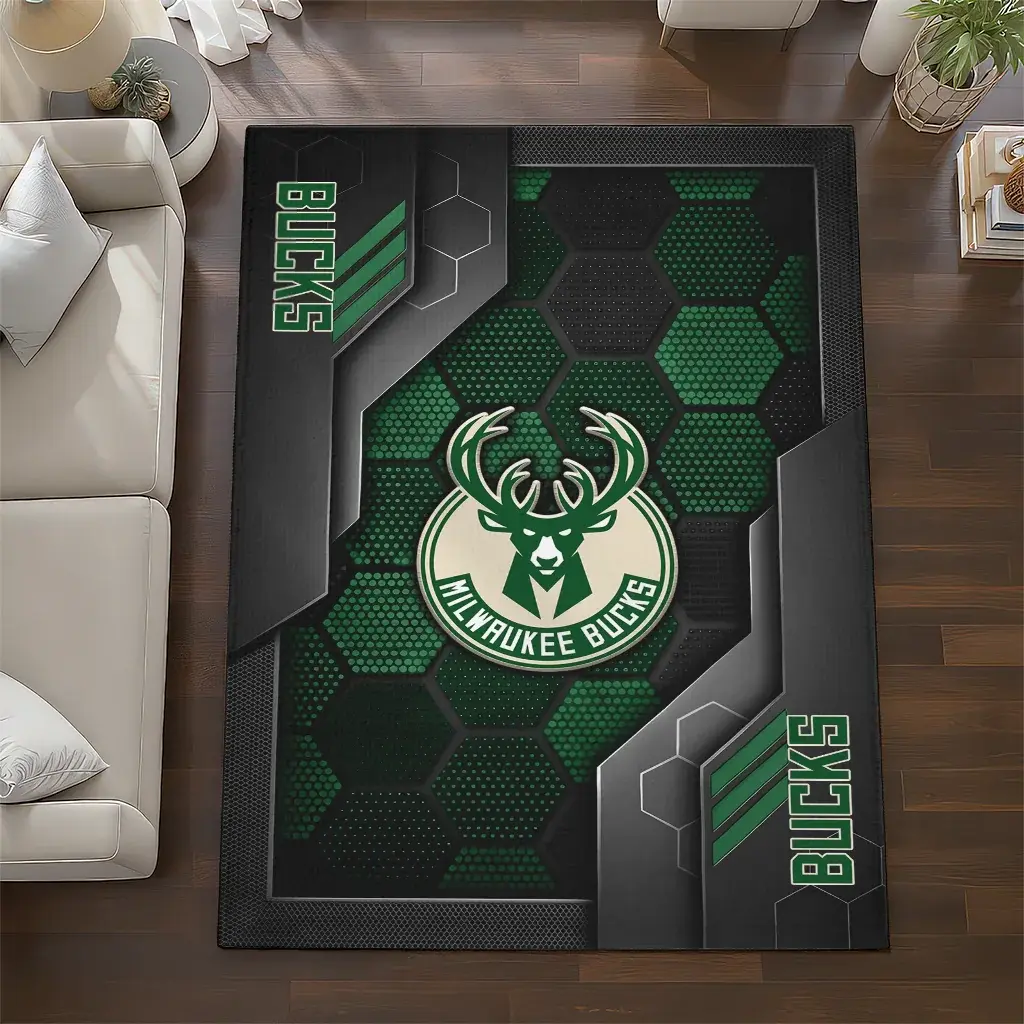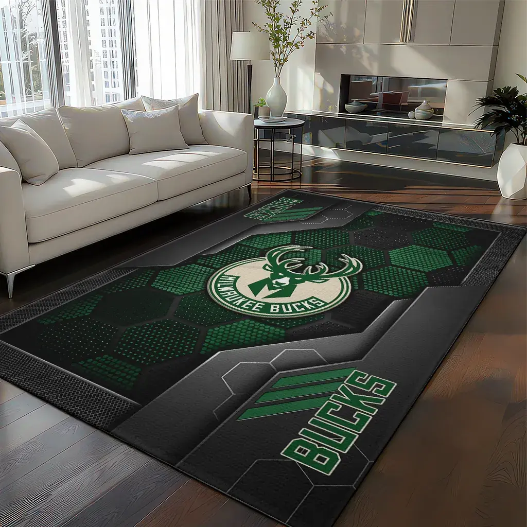 Milwaukee Bucks Rug – Hexagonal Grid Pattern Green