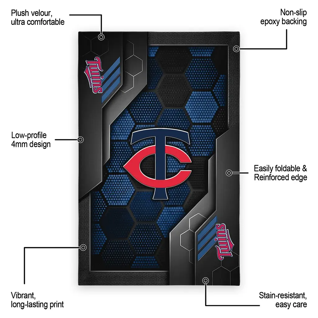 Hit a home run with your favorite team by displaying the Minnesota Twins Rug – Customized Hexagonal Grid Pattern Navy from MLB Fan Zone. Featuring a bold team design and crafted with plush velour, this durable sports rug offers ultimate comfort for your home or game-day fan cave. With a quality non-slip grip and stay-flat design, it’s the perfect accessory for any die-hard fan ready to rep their team from the living room to the clubhouse.