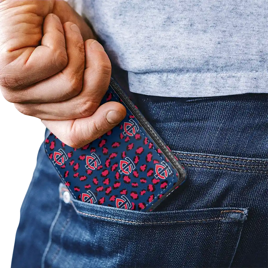 Hit a home run with Minnesota Twins by wearing the Minnesota Twins Leopard Texture Navy Wallet. Featuring a bold team design and crafted with premium materials, this durable sports wallet offers plenty of space for your cards, cash, and game-day essentials. With a secure fold-over closure, it’s the perfect accessory for any die-hard fan ready to rep their team, from the dugout to the streets.