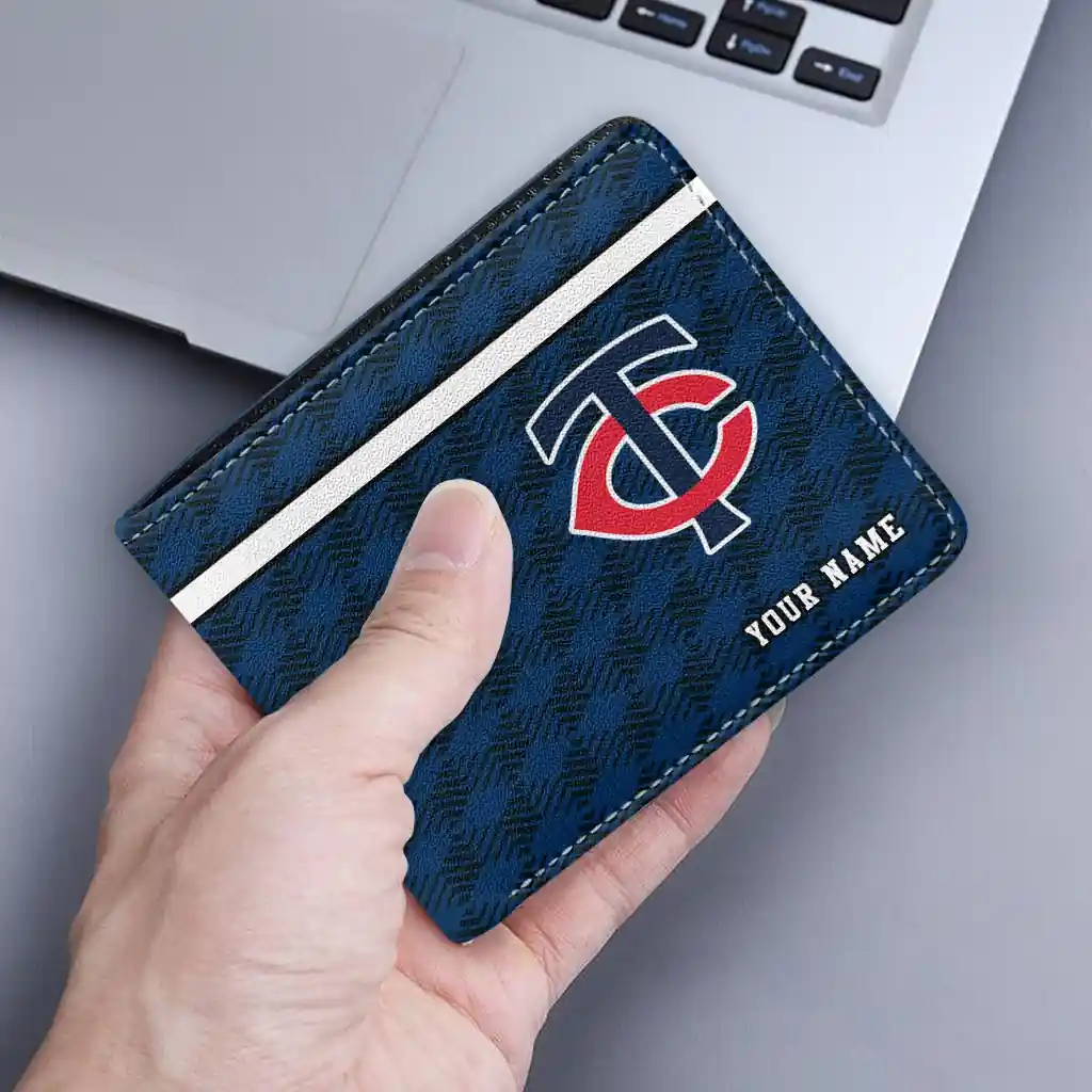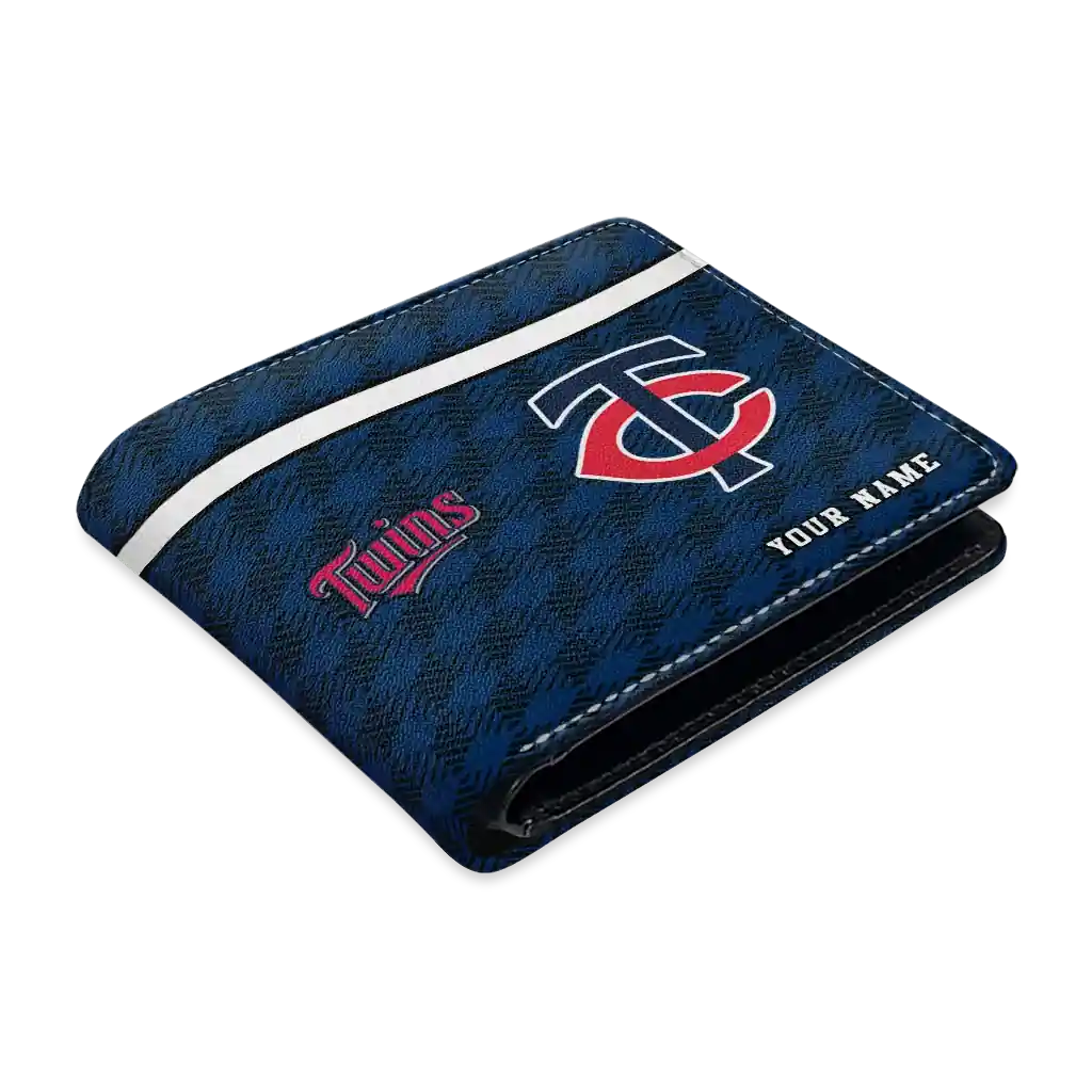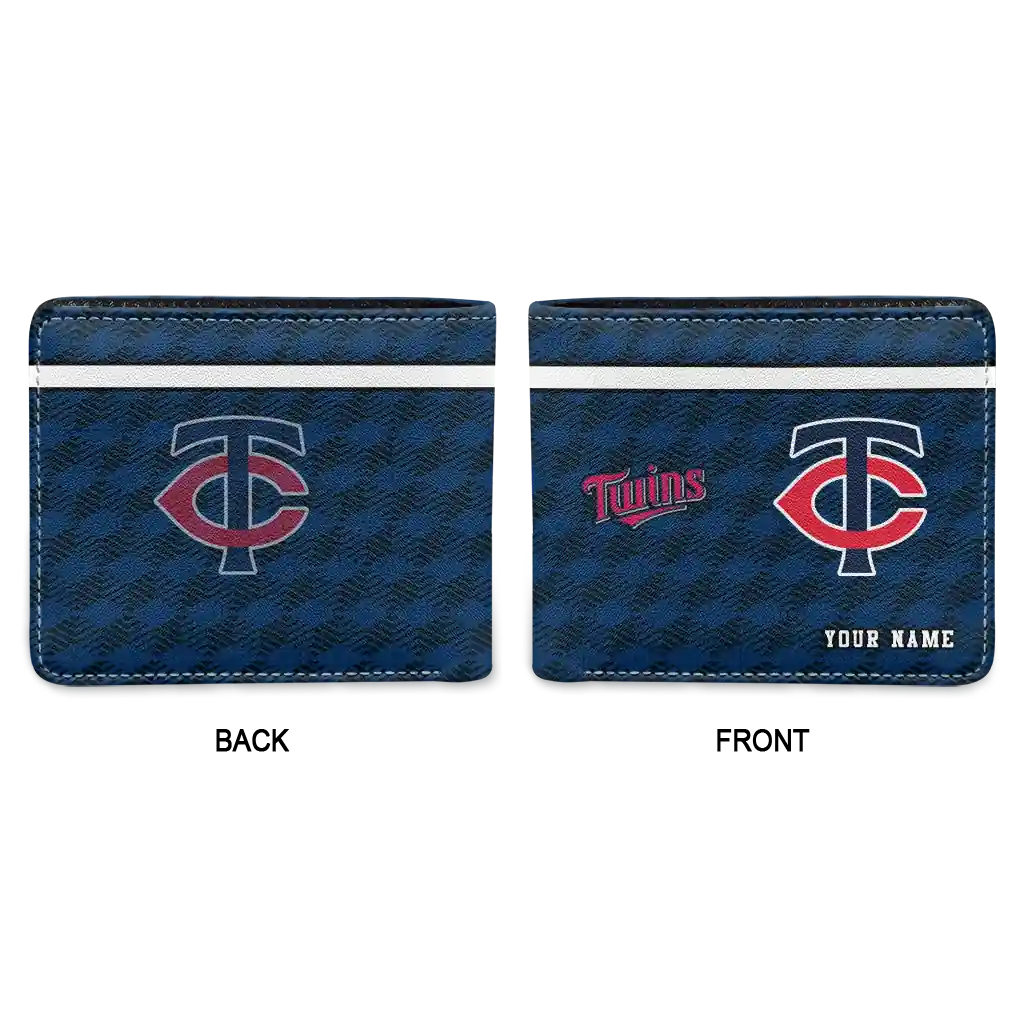 Hit a home run with Minnesota Twins by wearing the Personalized Minnesota Twins Cube Illusion Navy Wallet. Featuring a bold team design and crafted with premium materials, this durable sports wallet offers plenty of space for your cards, cash, and game-day essentials. With a secure fold-over closure, it’s the perfect accessory for any die-hard fan ready to rep their team, from the dugout to the streets.
