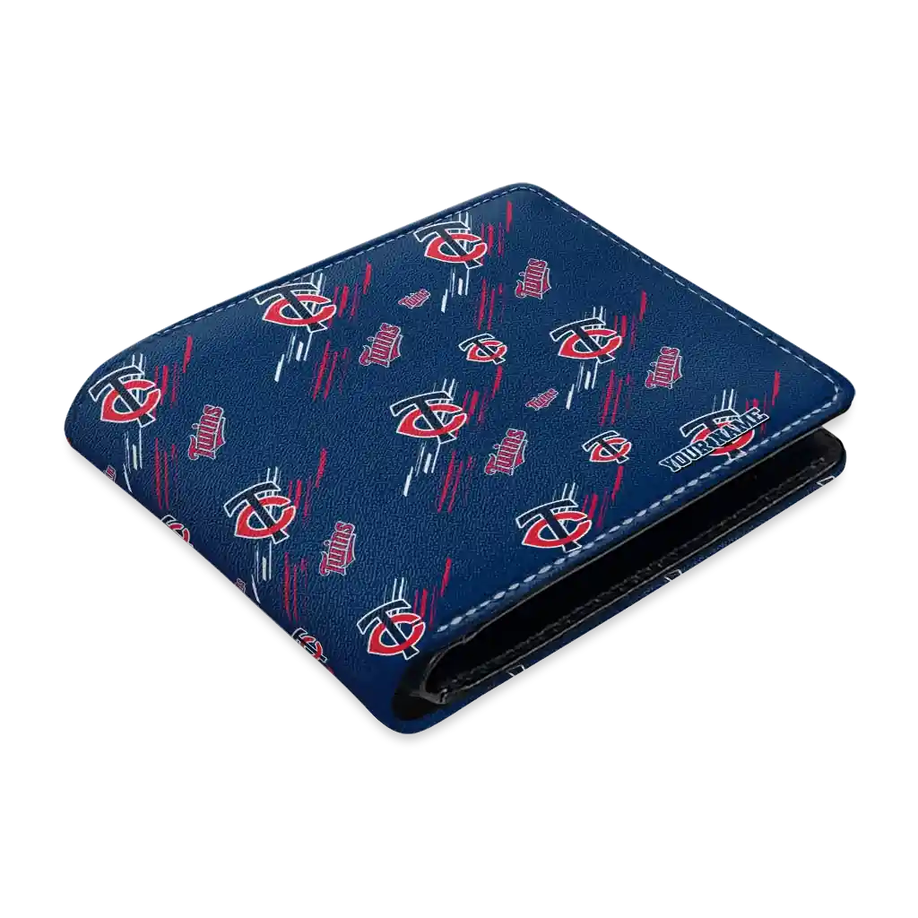 Hit a home run with Minnesota Twins by wearing the Personalized Minnesota Twins Streak Motif Navy Wallet. Featuring a bold team design and crafted with premium materials, this durable sports wallet offers plenty of space for your cards, cash, and game-day essentials. With a secure fold-over closure, it’s the perfect accessory for any die-hard fan ready to rep their team, from the dugout to the streets.