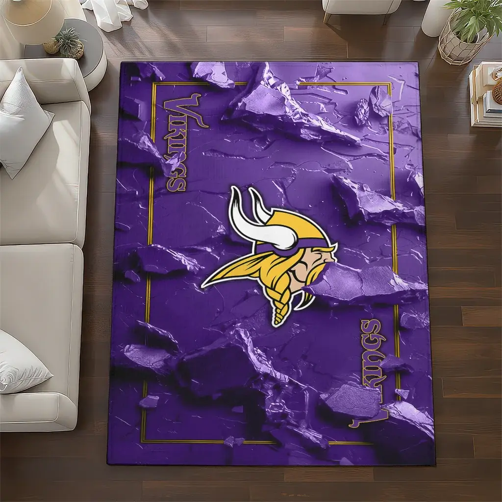 Minnesota Vikings Rug – Cracked Surface Design Purple