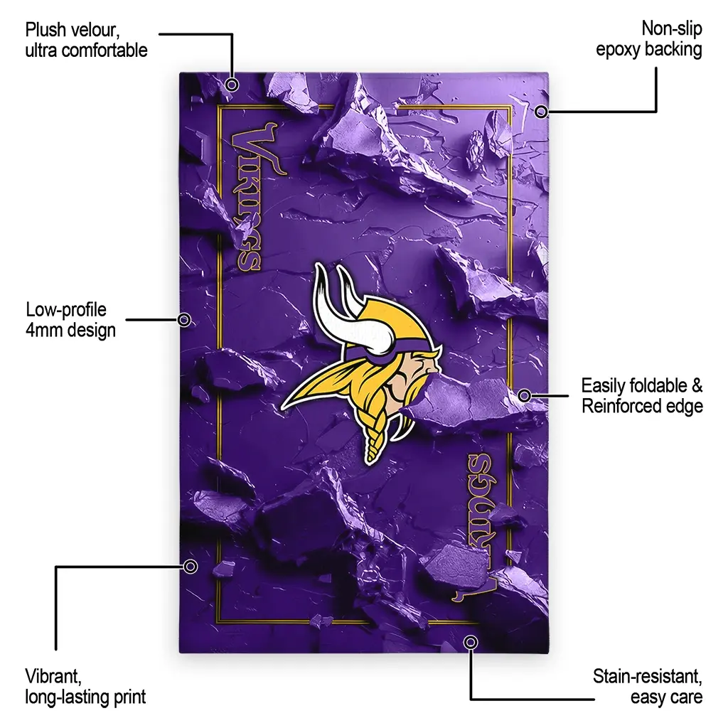Hit a home run with your favorite team by displaying the Minnesota Vikings Rug – Customized Cracked Surface Design Purple from MLB Fan Zone. Featuring a bold team design and crafted with plush velour, this durable sports rug offers ultimate comfort for your home or game-day fan cave. With a quality non-slip grip and stay-flat design, it’s the perfect accessory for any die-hard fan ready to rep their team from the living room to the clubhouse.