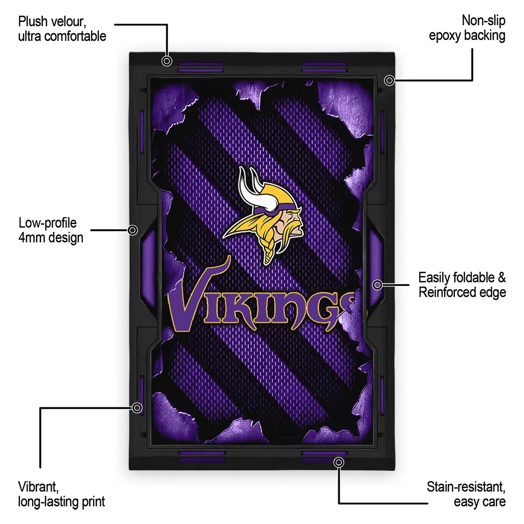 Hit a home run with your favorite team by displaying the Minnesota Vikings Rug – Personalized Torn Mesh Purple from MLB Fan Zone. Featuring a bold team design and crafted with plush velour, this durable sports rug offers ultimate comfort for your home or game-day fan cave. With a quality non-slip grip and stay-flat design, it’s the perfect accessory for any die-hard fan ready to rep their team from the living room to the clubhouse.