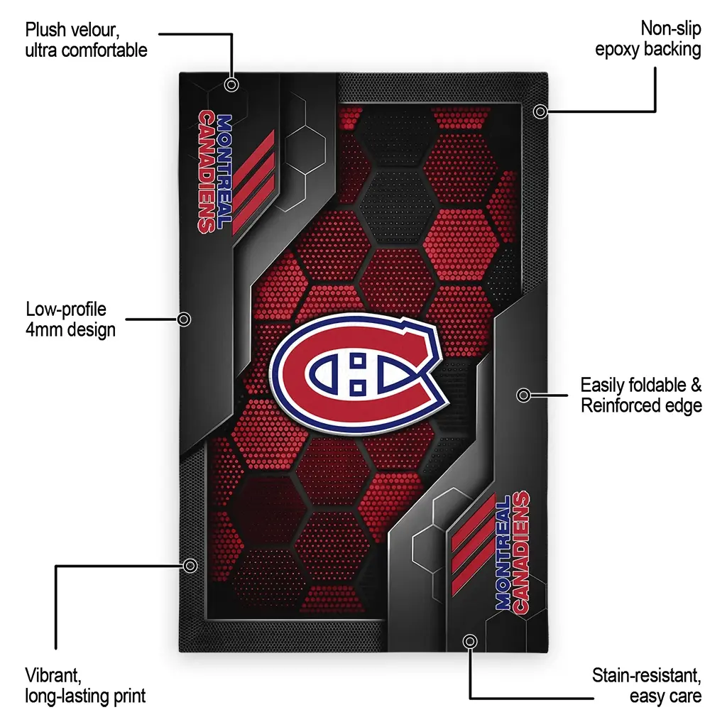 Hit a home run with your favorite team by displaying the Montreal Canadiens Rug – Custom Hexagonal Grid Pattern Red from MLB Fan Zone. Featuring a bold team design and crafted with plush velour, this durable sports rug offers ultimate comfort for your home or game-day fan cave. With a quality non-slip grip and stay-flat design, it’s the perfect accessory for any die-hard fan ready to rep their team from the living room to the clubhouse.