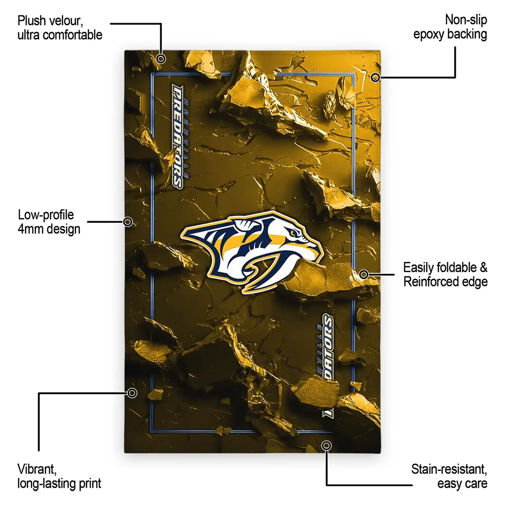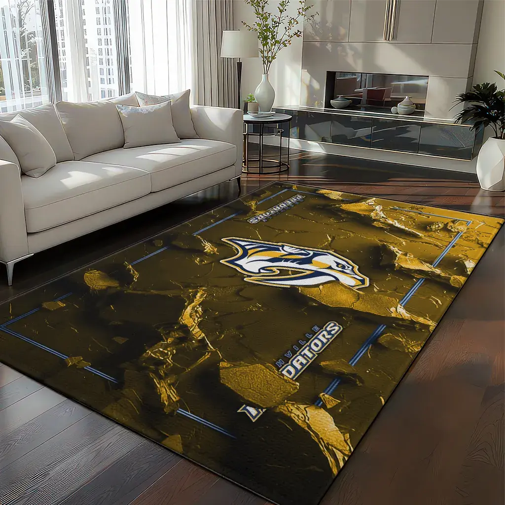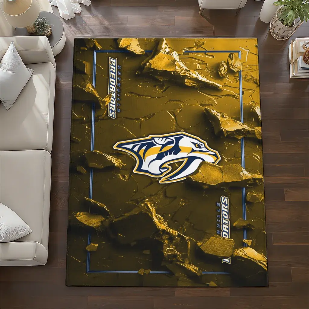 Nashville Predators Rug – Cracked Surface Design Gold