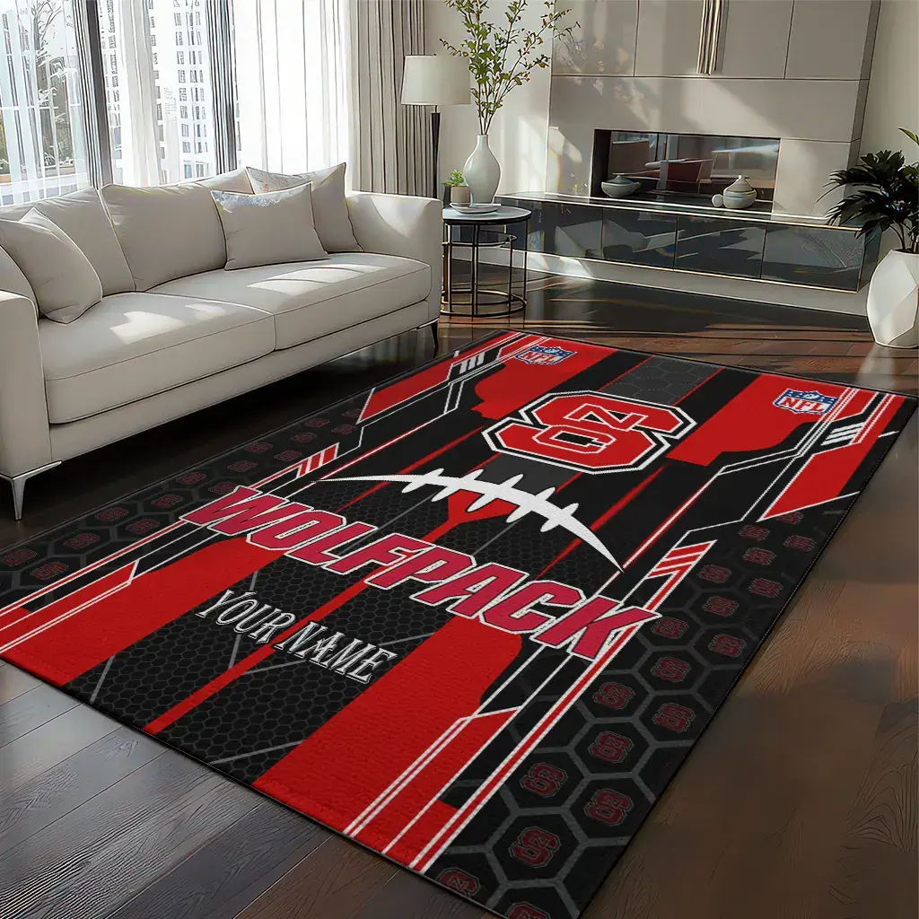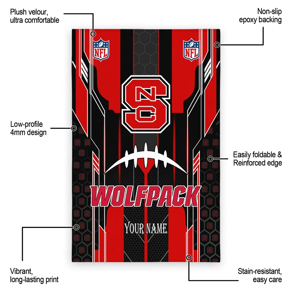 Hit a home run with your favorite team by displaying the NC State Wolfpack Rug – Custom Football Laces Red from MLB Fan Zone. Featuring a bold team design and crafted with plush velour, this durable sports rug offers ultimate comfort for your home or game-day fan cave. With a quality non-slip grip and stay-flat design, it’s the perfect accessory for any die-hard fan ready to rep their team from the living room to the clubhouse.