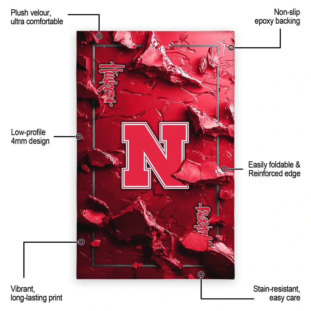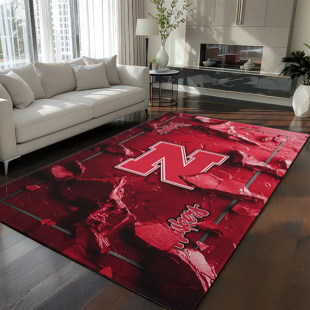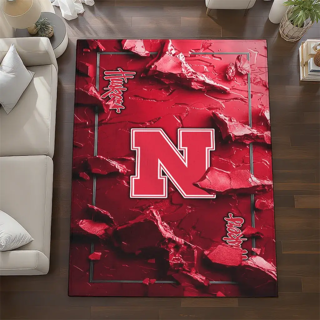 Nebraska Cornhuskers Rug – Cracked Surface Design Red