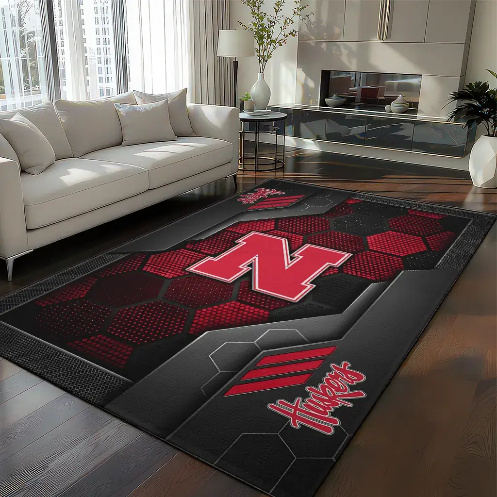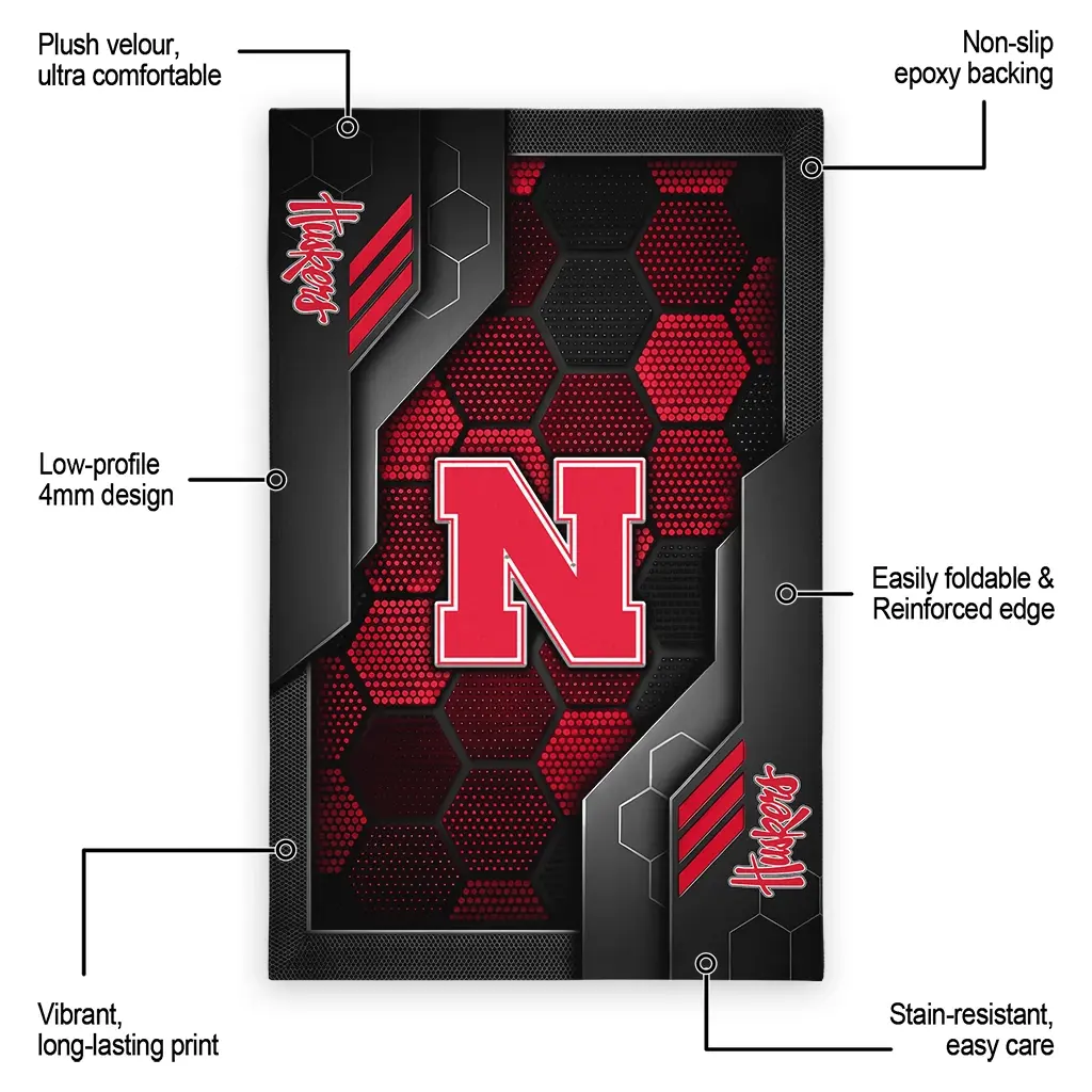 Nebraska Cornhuskers Rug – Hexagonal Grid Pattern Red