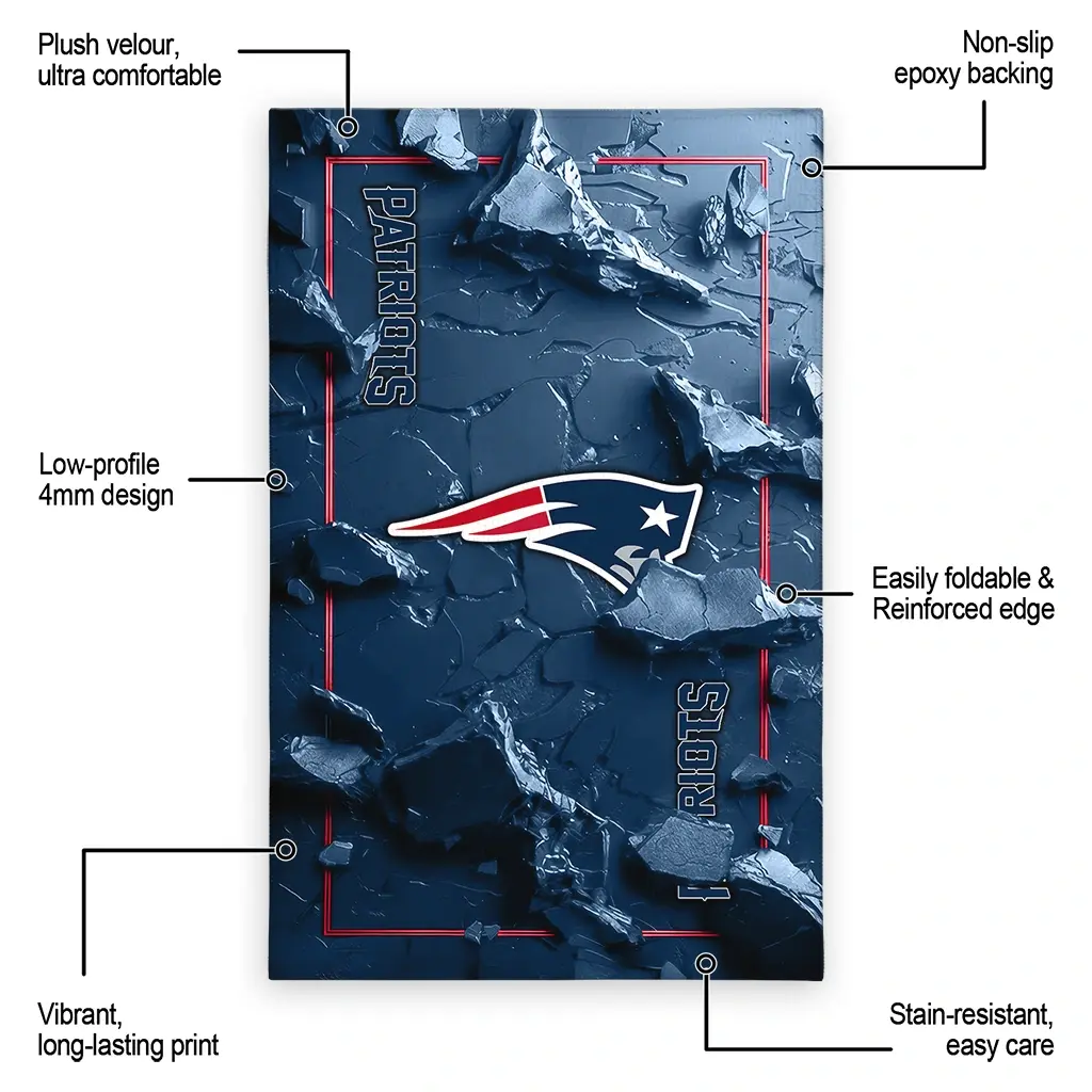 Hit a home run with your favorite team by displaying the New England Patriots Rug – Personalized Cracked Surface Design Blue from MLB Fan Zone. Featuring a bold team design and crafted with plush velour, this durable sports rug offers ultimate comfort for your home or game-day fan cave. With a quality non-slip grip and stay-flat design, it’s the perfect accessory for any die-hard fan ready to rep their team from the living room to the clubhouse.
