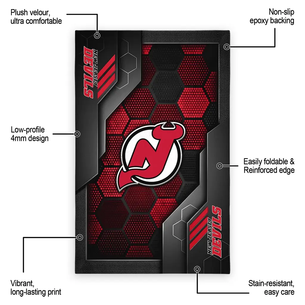 Hit a home run with your favorite team by displaying the New Jersey Devils Rug – Personalized Hexagonal Grid Pattern Red from MLB Fan Zone. Featuring a bold team design and crafted with plush velour, this durable sports rug offers ultimate comfort for your home or game-day fan cave. With a quality non-slip grip and stay-flat design, it’s the perfect accessory for any die-hard fan ready to rep their team from the living room to the clubhouse.