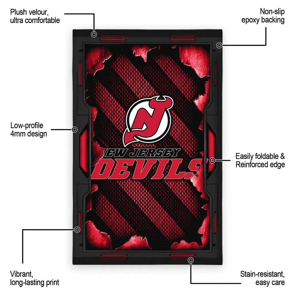 Hit a home run with your favorite team by displaying the New Jersey Devils Rug – Customized Torn Mesh Red from MLB Fan Zone. Featuring a bold team design and crafted with plush velour, this durable sports rug offers ultimate comfort for your home or game-day fan cave. With a quality non-slip grip and stay-flat design, it’s the perfect accessory for any die-hard fan ready to rep their team from the living room to the clubhouse.