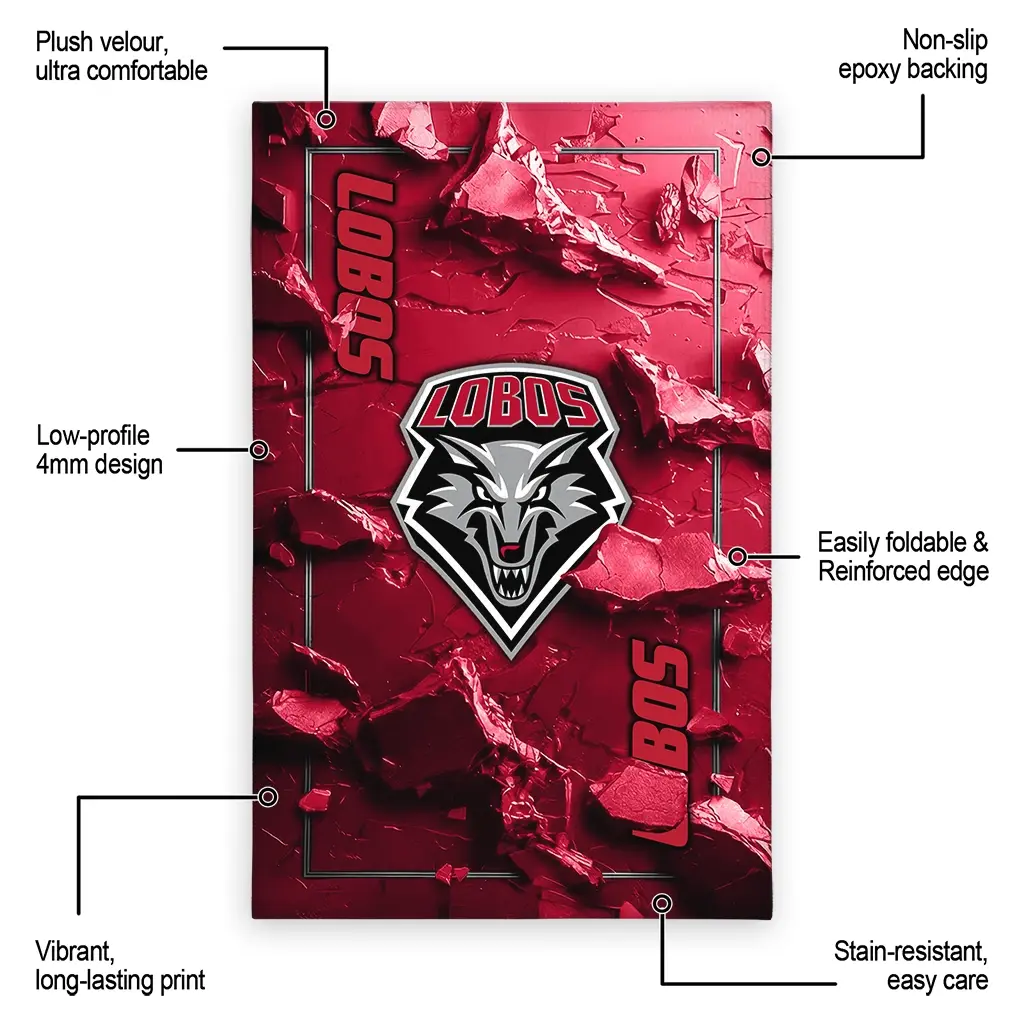 Hit a home run with your favorite team by displaying the New Mexico Lobos Rug – Customized Cracked Surface Design Red from MLB Fan Zone. Featuring a bold team design and crafted with plush velour, this durable sports rug offers ultimate comfort for your home or game-day fan cave. With a quality non-slip grip and stay-flat design, it’s the perfect accessory for any die-hard fan ready to rep their team from the living room to the clubhouse.