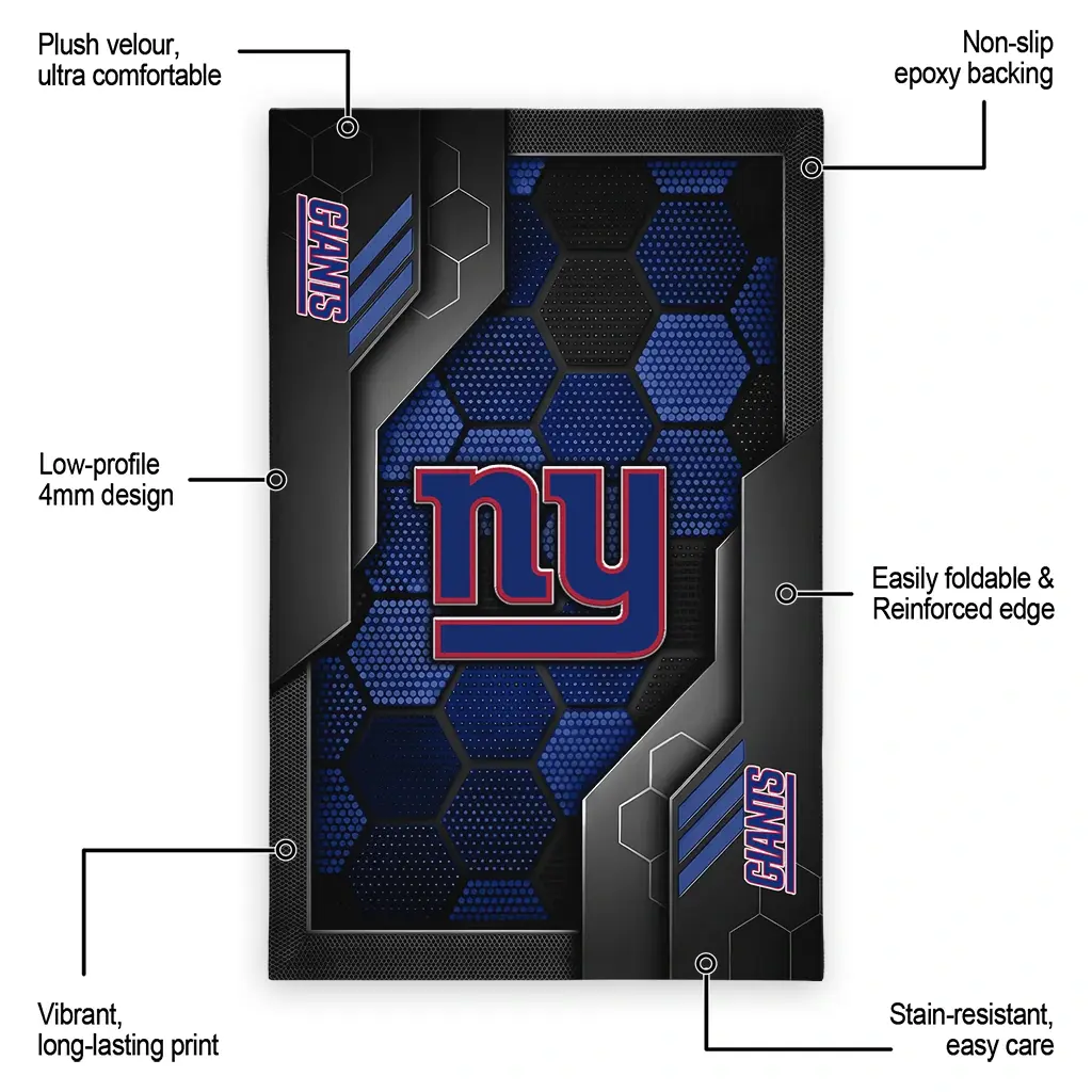 Hit a home run with your favorite team by displaying the New York Giants Rug – Custom Hexagonal Grid Pattern Blue from MLB Fan Zone. Featuring a bold team design and crafted with plush velour, this durable sports rug offers ultimate comfort for your home or game-day fan cave. With a quality non-slip grip and stay-flat design, it’s the perfect accessory for any die-hard fan ready to rep their team from the living room to the clubhouse.