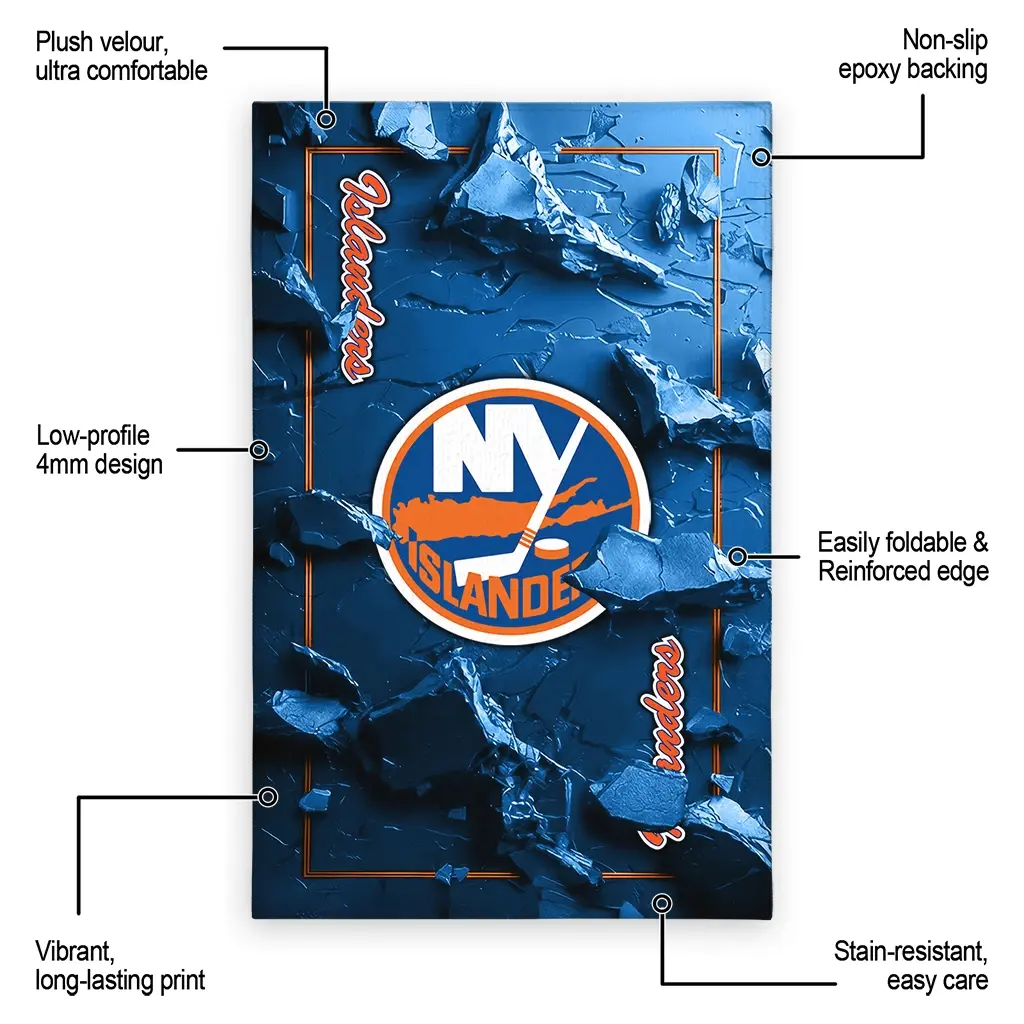 Hit a home run with your favorite team by displaying the New York Islanders Rug – Customized Cracked Surface Design Blue from MLB Fan Zone. Featuring a bold team design and crafted with plush velour, this durable sports rug offers ultimate comfort for your home or game-day fan cave. With a quality non-slip grip and stay-flat design, it’s the perfect accessory for any die-hard fan ready to rep their team from the living room to the clubhouse.